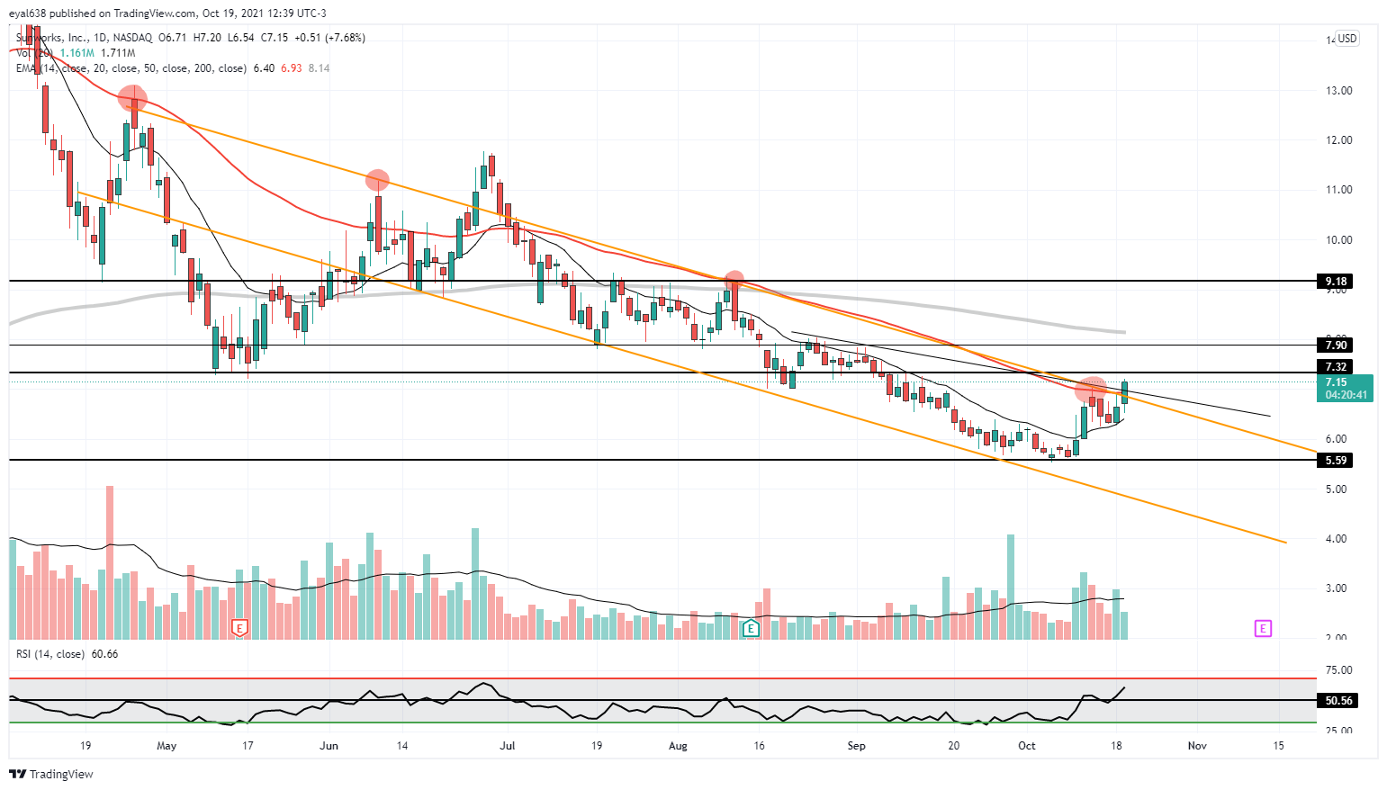 האנליסט הסבלני | 19/10/21 19:16 | 3|0תיכף מרפי יבוא... בגדול פה נכון לדעתי להוציא חלק, נאמר חצי , להעלות סטופ ולהמשיך עם השאר. נר פריצה היום על הימים האחרונים אם כי יכולה לרדת למימוש. אפשר לחכות עם סטופ עולה גם לחלק הזה אבל עשתה תנועה יפה . לצורך העניין חצי יצא ( זה 30%~). 👍