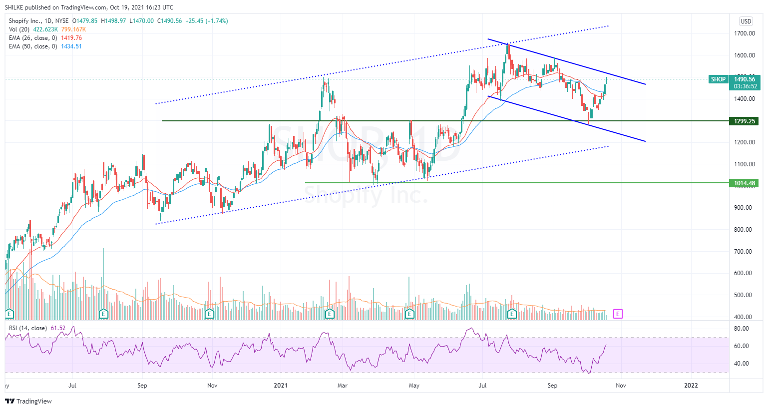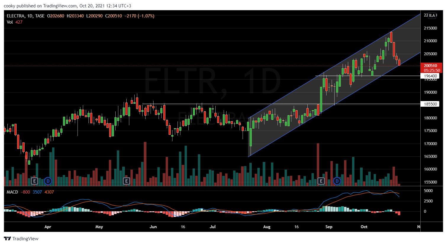 Tal81 | 19/10/21 14:42 | 10|0בניתי את התעלה לפי הנגיעות העליונות ולכן יש חיתוכים בחלק התחתון שלה. (למרות שבירידות צריך להתייחס לקו המגמה לפי השקיעות) יש קו מגמה עולה תומך מאז מאי. לכן מניח שהתחתית מעל 129 ובסיכוי סביר כבר התממשה עד 129.9 ובתקווה רוצה לתקן. אלמלא קו התמיכה של חצי השנה האחרונה כנראה הייתי מהמר על תמיכה ב 128 אם זו טעות טכנית להסתכל על זה ככה אשמח להסבר.