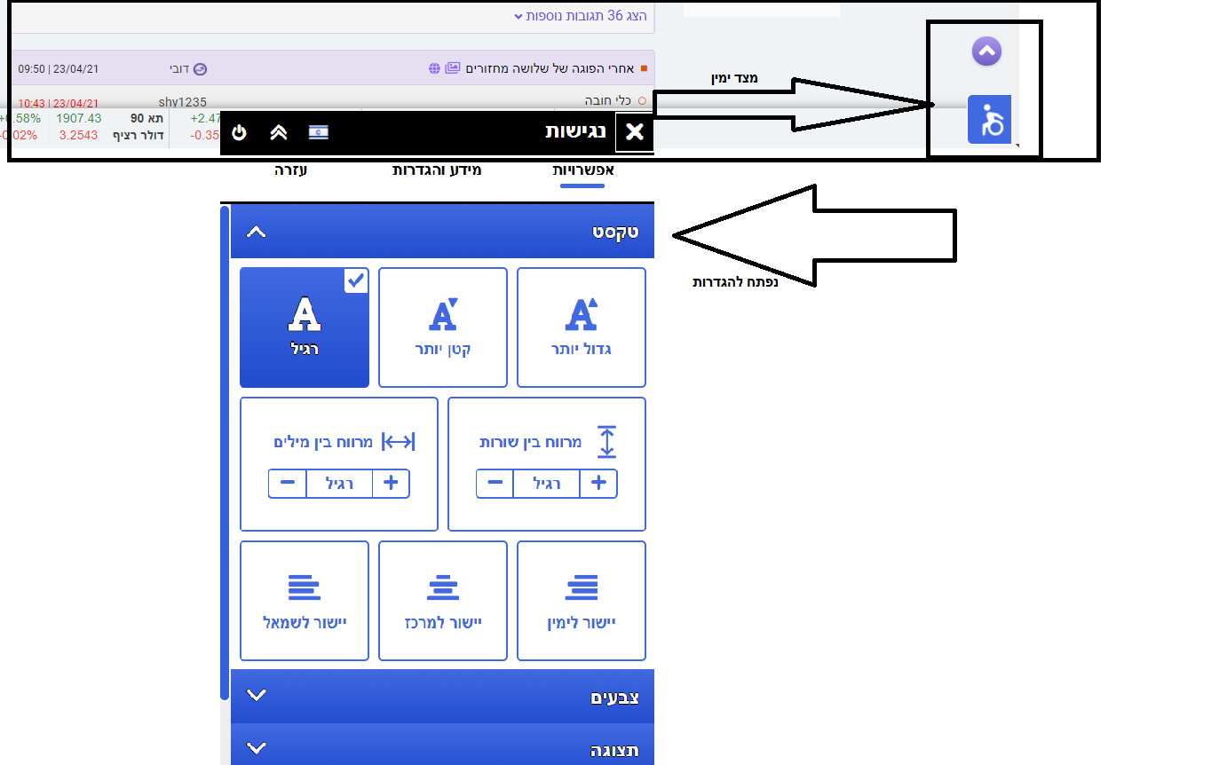 האנליסט הסבלני | 23/04/21 15:06 | 155|13האתר פה שהוסיפו פה כפתור של נגישות 👏 וואלה לא שמתי לב, מרפי לחץ בטעות על משהו ( כנראה הייתי על כדורים של אבוקדו😆) וכבר יומיים קופץ לי טקסט מוגדל עם הודעה. עד שהיום ראיתי את הכפתור נגישות. זוכר שהיו פה התכתבויות עם דוד 10 ובכלל (ישר קפץ לי בראש) לגבי הנושא. אז יפה וכל הכבוד על המחשבה והתוספת. חושב שמגיע מילה טובה פה לצוות ( כן יירבו ואמשיך להציק בלי שום קשר לתוספות, חחח ). מה שמגיע מגיע 👏 הנה, צירפתי צילום מסך, הכפתור נמצא בצד ימים בתחתית של המסך. בריאות לכולם כמובן 🙏