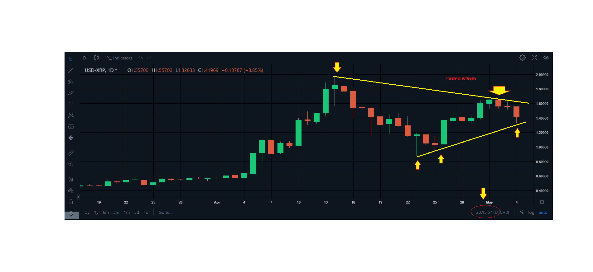 matanmils | 01/05/21 12:25 | 33|0כרגע יש תיקון קל לירידות האחרונות, מה שיכול להיבנות כדגל דובי. אם כבר עשית פעולה מסויימת (שמוגדרת בעיניך כטיפשית-בטח מכירה) ואני מתאר לעצמי שנבעה מפזיזות שזה בעיית מסחר אחרת. מקווה שלא חזרת על אותה טעות גם בקנייה חוזרת בפזיזות . תראה, הגרף בא ומתאר התנהגות של השחקנים בשוק , זה לא משנה איזה נייר נמצא שם, אתה כן צודק שהקריפטו מתנהל כמו נכס תנודתי ולכן קשה יותר לסמן יעדים אמינים, אבל התבניות מסמלות אותן מגמות ורצוי להעזר בהן , דווקא כי אלה ניירות תנודתיים , ורצוי לא להתקע בתנועה נגדעת לפוזיציה , בכל אופן בהצלחה.