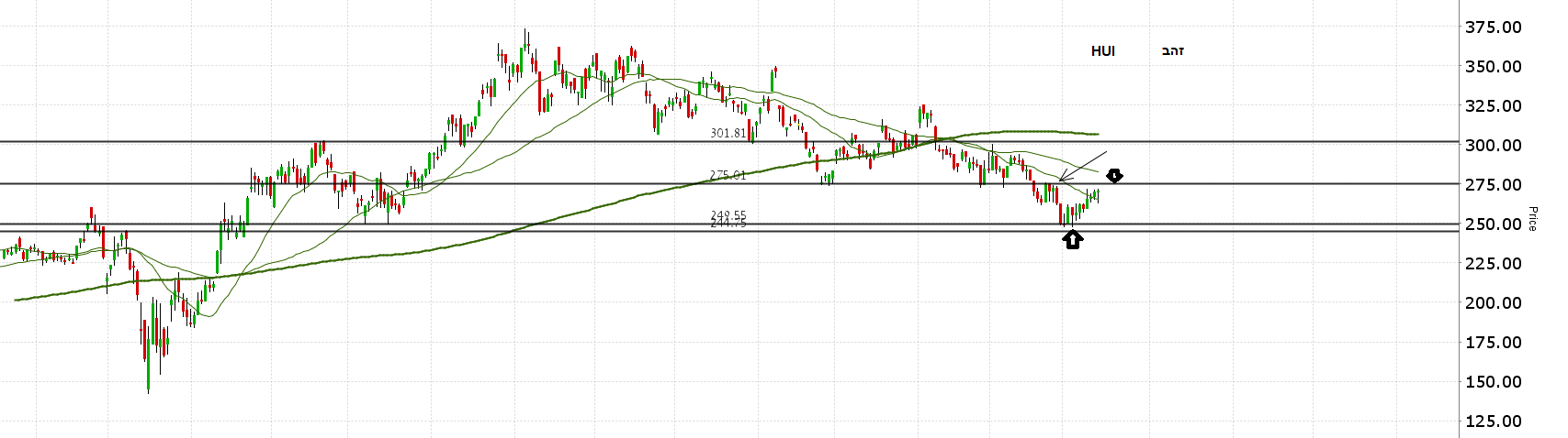 • זהב דרך HUI 268, נקודה מעניינת, נכון לרגע
