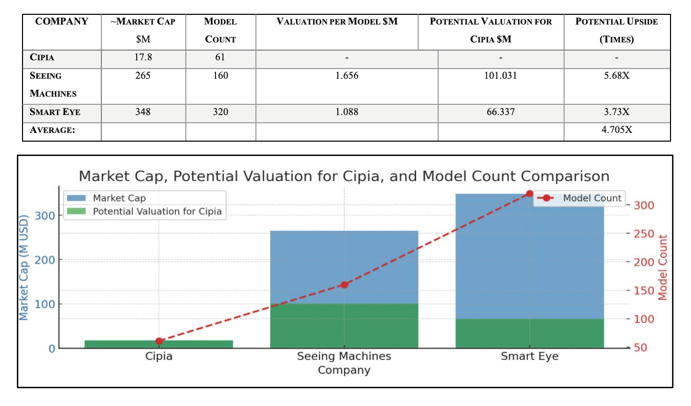בנוסף, בדוח, מציגים האנליסטים ניתוח השוואתי בו סוקרים את שווי השוק של סיפיה אל מול אלו של מתחרות משמעותיות שלה כגון חברת Seeing Machines הנסחרת בבורסת לונדון וכן חברת SmartEye אשר גם היא ציבורית ונסחרת בין היתר בבורסת שטוקהולם, כאשר שתי המתחרות הללו בעלות שווי שוק גבוה משמעותית מזו של סיפיה .