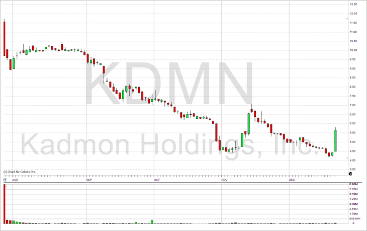 גם ההנפקה המאכזבת ביותר לשנת 2016 נמצאת בסקטור הבריאות. חברת HOLDINGS KADMON (KDMN) מארה"ב, העוסקת בגילוי, פיתוח ומסחר של מולקולות קטנות לטיפול במחלות אונקולוגיות. עוד בטרם הופעתה הראשונה במגרש הציבורי של וול סטריט, ניתן היה לצפות לביצועים חלשים אשר נבעו מחוסר אטרקטיביות של מוצריה ותחרות גדולה של התחום עם גופי ענק מוכרים וותקים, לא זכתה לתמיכתם של החתמים המובילים וערכה נחתך ביותר מ- 50%.