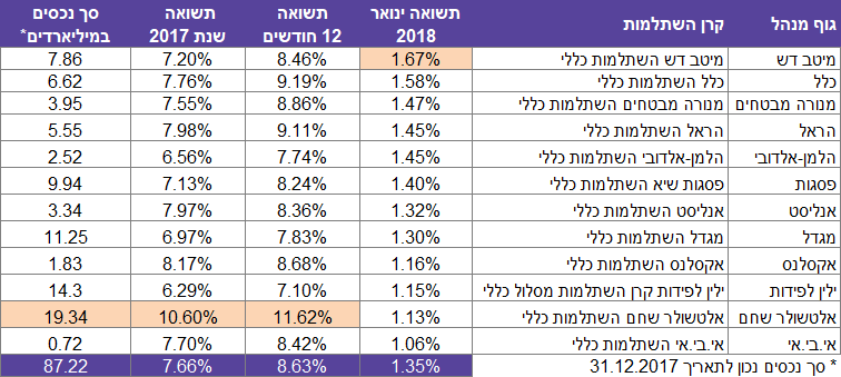 קרנות השתלמות ינואר 2018: מיטב דש במקום הראשון