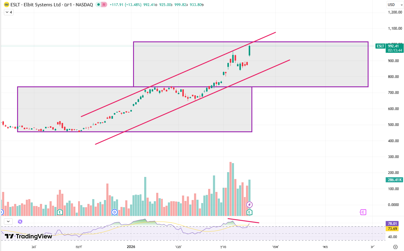 אחרי הדוח השנתי והרבעוני של 2025 שפירסמה היום, ועם רווחים עוצמתיים,וצפי עתידי חיובי מאד לשנים 2026/2027,סגרה היום בגבוהית שנתית חדשה,כשכמעט נגעה בקצה תעלה בטווח הארוך,ועם נר בוהק שכבר זמן רב לא נראה במניית מעוף ביטחונית,ורק להזכירכם שאלביט מערכות אחת משלושת המניות הכי גדולות מבין ה 35,וכמדומני עברה למקום הראשון בגודלה. כמו כן,המחזור בנסדק יעלה על 250% מהממוצע התלת חודשי במניה,כשנותרו עוד 3.5 ש לסיום המסחר.