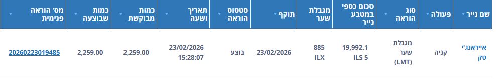 על האחזקות שלכם. תודה🌹 ושנזכה לימי שגשוג וביטחון.