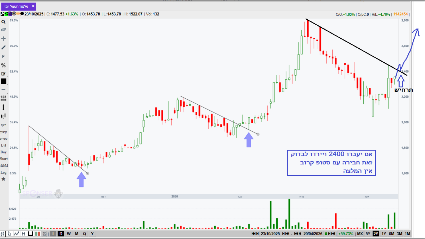 המניה נמצאת באזורים שאני אוהב לאסוף בהם בנחת לטובת בניית הפוזיציה, ממתין כמה אחוזים למטה עם פקודות קנייה נוספות.