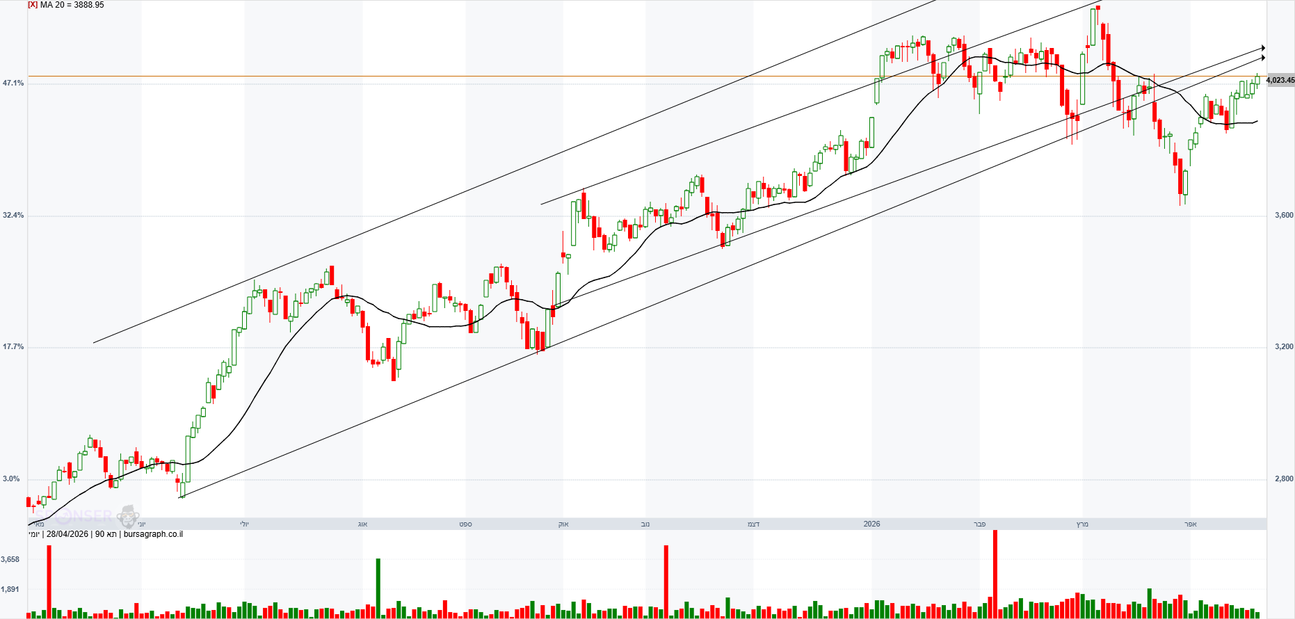 תא 90 כמה ימים נסחר מעל ממוצע 20