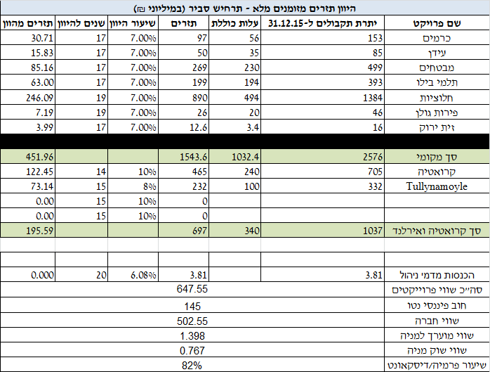 אני רואה שעלות ההנהלה 6.6M שח לחציון. 13.2 לשנה בערך. ונניח ש3.8 יש מימון מדמי ניהול עדיין מדובר על הוצאה שנתית של 10M לניהול כל הפרוייקטים. זה ערך שלילי של לפחות 100 מיליון. ואם מהוונים לפי7% - 142 מיליון . אלא אם תפקיד ההנהלה זה לקנות את הנכסים בזול ולמכור ביוקר - ואז יש לה ערך מוסף. אבל אתה מעריך את שווי הנכסים לפי התזרים. ולכן להנהלה תזרים שלילי - ושווי שלילי. ובקשר לאגח להמרה - אם מניחים שווי שוק - אז האגח הן חוב. אבל אם מניחים שהמניה שווה קצת יותר משקל - אז האגח יהפכו מחוב להון , ויש להפחית את החוב - אבל לחלק את השווי נטו בין יותר בעלים. לא מהותי במספרים הנוכחיים. בכל מקרה תודה על הטבלה החשובה.