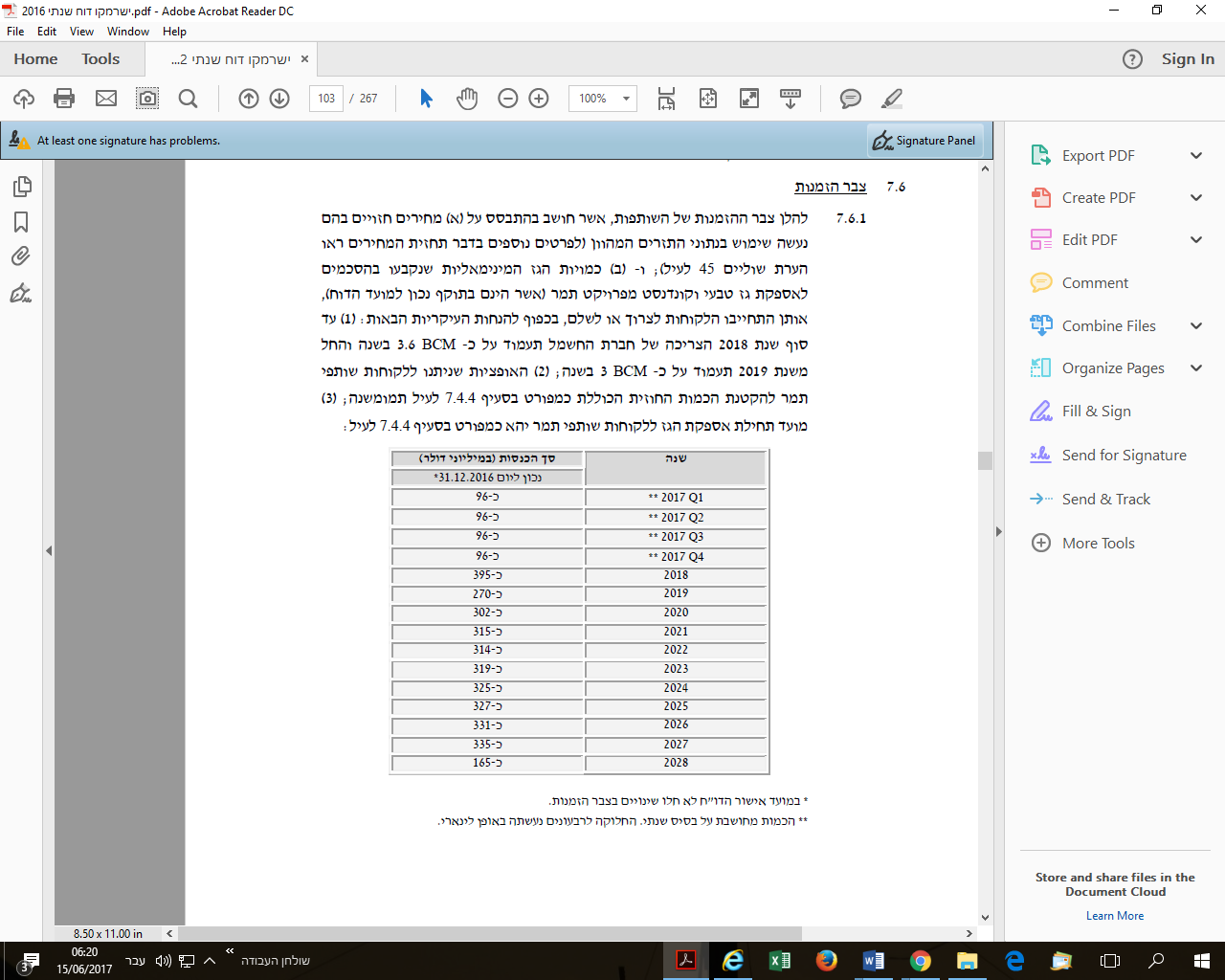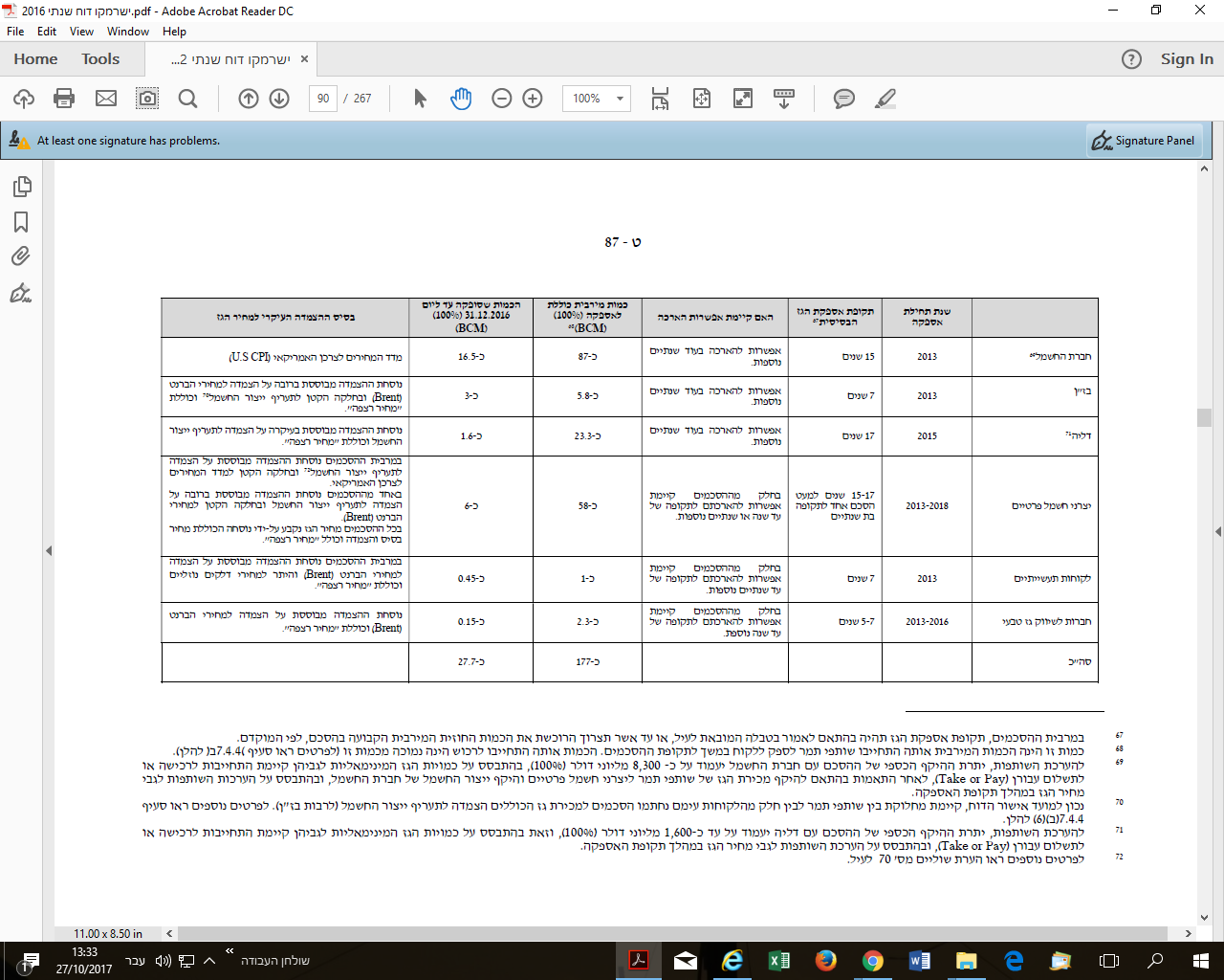 אני מצרף שקף של ההזמנות נכון לדוח שנתי 2016 מאז היצטרפו עוד 2 לקוחות בירדן. ככה שהשקף מוטה כלפי מטה. ההסכמים החתומים הם ל15 עד 18 שנה. גם לחברת חשמל תקופת האופציה הראשונה כבר מתה. ולגבי האופציה השניה המחיר יכול לרדת ב10% במקסימום. מי שיראה את השקף זה בכסף. אחפש את ההזמנות ב bcm/ בכל מיקרה ישרמקו דיוחה על חוזים של טיפה מעל 200 bcm רוב החוזים סגורים. תחלקו 210 bcm ב20 שנה זה 10 bcm לשנה. והחוזים הם פחות מ20 שנה. אז איך הגיעו למיספרי המכירה שהגיעו? לא יודע. לגבי מחיר גם ירידה של 20% במחיר לא תוריד הרבה יותר ברוח. אז המיספרים שיצאו פשוט מופרכים.