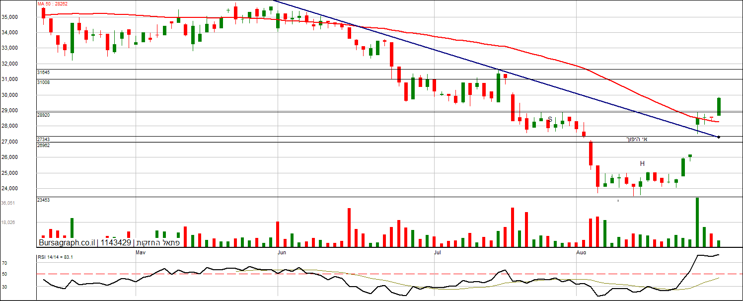 ראשית טכנית...שימו לב לכמה דברים: בניית תבנית אי היפוך שורי. פריצת קו מגמה יורד פריצת ממוצע 50. חיתוך ממוצעים שורי קצר . יעדים הבאים סגירת הגאפ והאופקית....31000-31600. פונד חלק מכתבה של אתמול בכלכליסט...צפי לרבעון הבא: "שווי השוק של רשת המלונות פתאל, שפעילותה מתפרסת על יותר מדינות וכוללת הפעלה של יותר בתי מלון, עומד נכון לסוף השבוע על 4.4 מיליארד שקל. זאת לאחר שבשבוע שעבר זינקה המניה ב־16% והתאוששה לאור דו"חות כספיים חיוביים ותחזית אופטימית לנוכח שבועות של אי בהירות מאפקט זן הדלתא. לפתאל 187 בתי מלון בישראל ובמדינות שונות באירופה, נכון לסוף יוני רובם המלא פעלו ורק 10 נותרו סגורים. פתאל הגיעה באוגוסט לשיעורי שיא בתפוסה בטריטוריות השונות שבהן היא פעילה והציגה הכנסות משירותי אירוח שיצמיחו ערך פי 2-1.5 במחצית השנייה של השנה ויגיעו עד 1.97-1.57 מיליארד שקל לפי התחזיות. זאת ביחס להכנסות במחצית הראשונה, שעמדו על 1.03 מיליארד שקל.