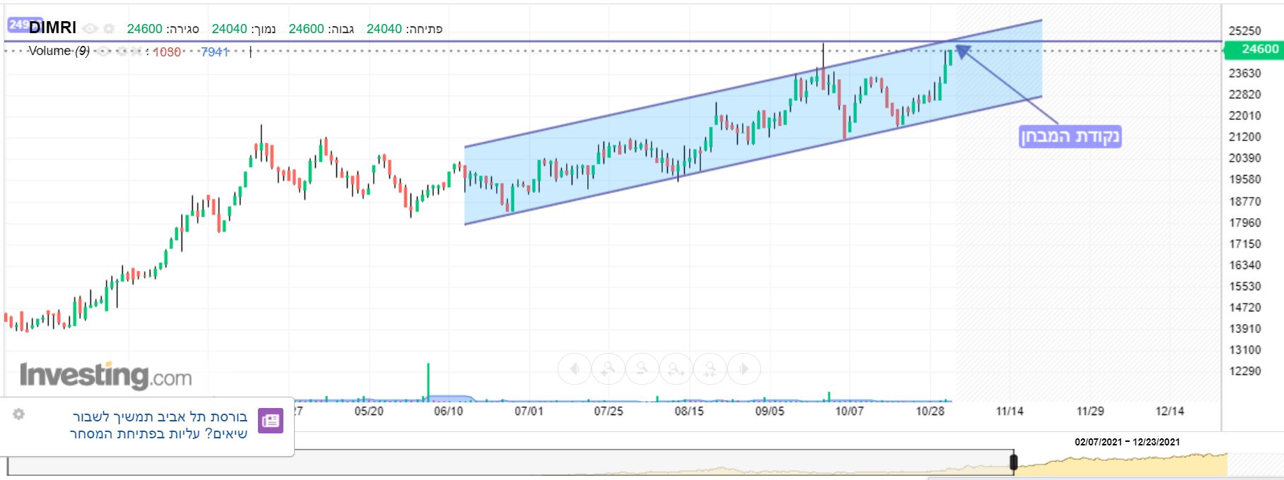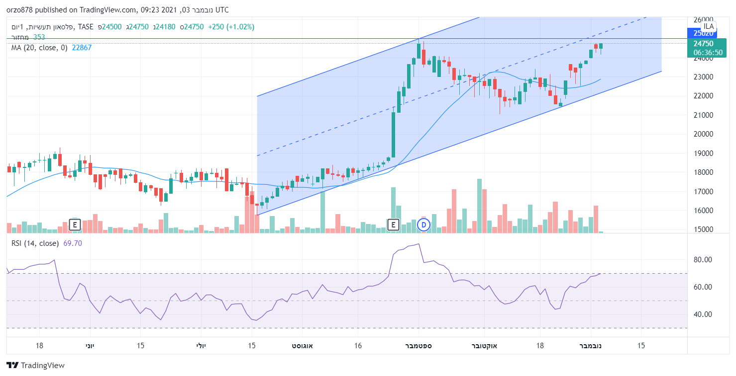 באזור רמה 24900-25000 צריך לשקול בכובד ראש מימוש מחצית למי שמחזיק. מאידך, אם השוק יהיה בתנופה, בפרט הנדלן, כמו שקורה בימים אלה, אזי יכולה לפרוץ קדימה, ולכן כדאי להשאיר מחצית בפנים... לשיפוטכם. אינני ממליץ. ג"נ: מחזיק...🤞