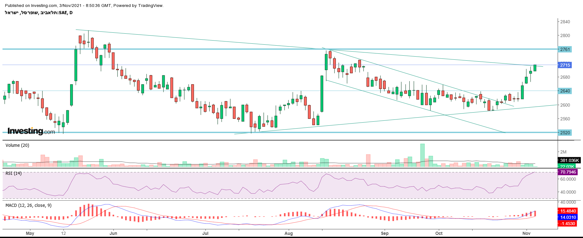 נראית טוב מאוד בימים האחרונים, בין היתר הודות לעליית המחירים הצפויה, שהקמעונאים לא אמורים להפסיד ממנה, אלא להיפך. לדעתי תנסה להגיע לאופקית באזור 2760. לא אתפלא אם תנוח בדרך לאיזו בניית דגל. מחזיק.