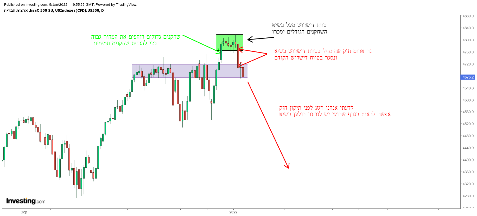 אז סביר להניח שאם בסוף דצמבר רובנו חשב במושגי אפקט ינואר כמו שחווינו בשנים האחרונות במיוחד ב ינואר 2021 . אז לא בטוח שהשבוע המחשבות נשארו כשהיו. אני מעדיף ללכת על הצד הבטוח ואני חו"ח לא פוסל אפקט ינואר או פבר או מרץ כל מה שאני אומר הוא עד שלא נראה קו ברור וברצף של עליות אני מעדיף לנצל כל תיקון עולה ולראות בו איזור חילוץ ושחרור חלקי לפחות של הקניות שנעשו במהלך השבוע שעבר . בהחלט יתכן וזה יבוא ע"ח עליות בהמשך ויתכן שמה שימכר היום אצטרך לרכוש גבוה יותר אך מאחר והייתה פתיחת שנה חזקה עם עליות יפות בלא מעט מניות וקיבלנו בהמשך ירידות חדות ונעילה מעורבת בשישי זאת עוד דרך להתמודד . צריך לקחת בחשבון שהבורסה המקומית עד עכשיו לפחות הלכה בקו שלה ועלתה לשיאים יתכן וזה ימשך ומישראל תצא תורה לכל העולם ונראה עליות בהמשך השבוע בשאר הבורסות. אני אישית תמיד בוחן את המסחר אך ורק לפי ההתנהלות בפועל וכך אמשיך שיהיה לנו שבוע ירוק וטוב
