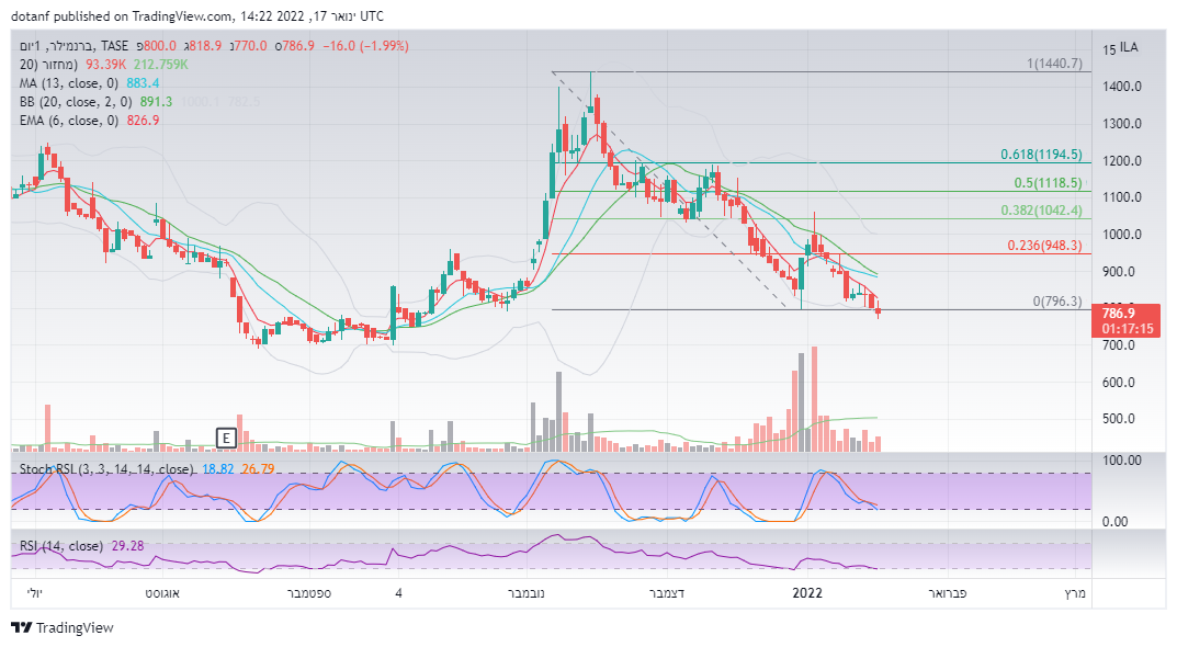 מצד אחד אתה מדבר על תקופת הזוהר שלה ששלטה יפה עד להנפקה המזורגגת ב1570 שגם אני אכלתי שם לקרדה ונאלצתי למכור אותה מהר מאד לאחר ההנפקה תוך קיבוע הפסד שהבנתי שעוד לא ראינו תחתית . מצד שני אתה מדבר על חוסן פיננסי שהוא הלחם והריבה של כל מנייה .תראה בדיעבד אפשר לומר שתקופת הזוהר היה ניפוח ללא פרופרציה כי בנו על תילים תילים של משתנים שבסוף לא עמדו במבחן . מאז ברנמילר עשתה כברת דרך ולמרות הירידות האחרונות שאנו חווים שאני אישית רואה בהם לאו דווקא ירידה של ברנמילר כברנמילר אלא גל יורד ששוטף לא מעט מניות שהן לא מניות "ברזל" פר-אקסלנס ומכאן האופטימיות שלי לגביה . בכל מקרה אם עקבת קצת אחריי אתה יודע שאני פועל כמעט ללא יוצא מהכלל אך ורק לפי אופי המסחר ,מחזורים והתנהלות בפועל . יחד עם זאת שאני מזהה תחתית במניה אני מתחפר שם ובונה לי בקתה לדגור ואחרי שאני עובר שלב של מימוש חלקי בנק. חילוץ ומאבטח את עצמי מסביב אני בדרך כלל הופך לונג על המניה ודוגר . כך היה בסיבובים האחרונים שלי איתה . מבחינתי ונשאלתי על כך שבוע שעבר גם אם היא תרד מתחת ל 700 אני שם מוכן עם מזומן. יש לה לא מעט תיקונים שנעים בגבול ה 12-18 או 14-22 שכרגע הן מוגדרות אצלי נקודות חילוץ בקנה אין לה הרבה אבל יש את עסקת ברזיל ויטבתה ויש גם פיילוט בארה"ב ולמרות שאני לאאוהב לצטט אנליסטים יש גם את זה מ לפני חודש וחצי יעד 1580 אז נמתין ושיהיה מזל והצלחה יש לי גם גרף הדמיה שיצרתי בזמנו עוד שהייתה למטה עם היעדים שמימשתי בהם.אבל עזוב לא כדאי להעמיס