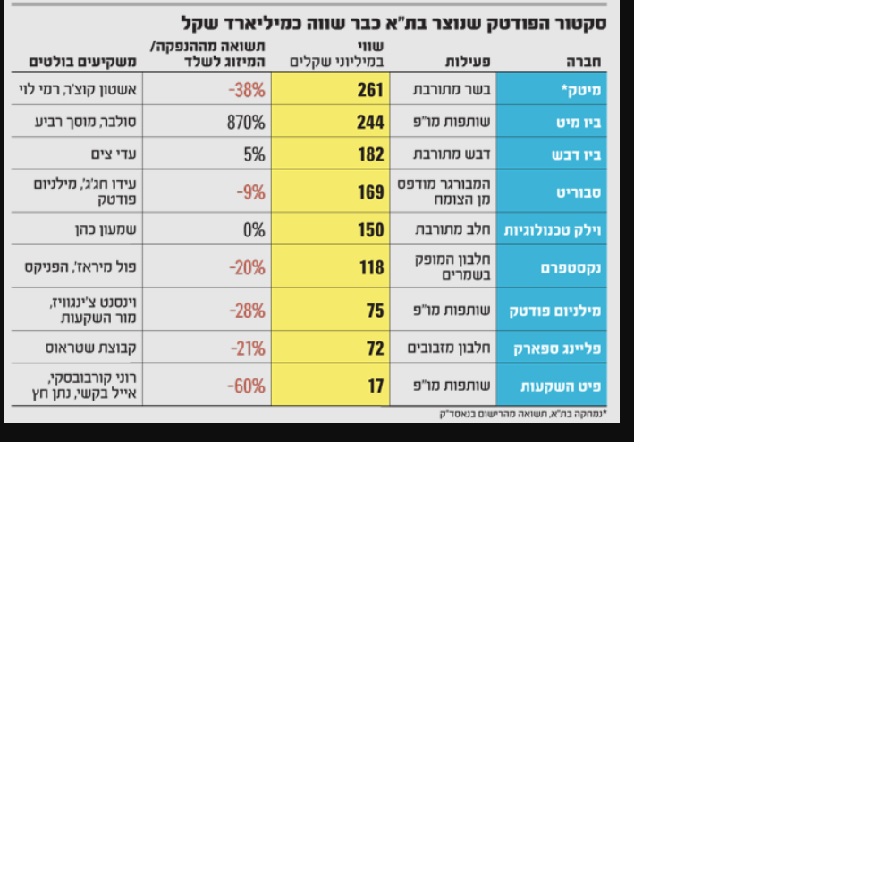 איך מוסך מכפר סבא נהפך לבעל המניות הגדול ביותר בשותפות המו"פ ביומיט מוסך רביע מכפר סבא, שבבעלות יוחנן ואיילת רביע, מחזיק ב-35% מיחידות ההשתתפות בביומיט, ב-5% מיחידות השתתפות במילניום פודטק וב-8.5% ממניות קפיטל פוינט ? גורמים בשוק סבורים: שיר חן, יזם בתחום הנדל"ן וההשקעות, קשור להשקעות המוס