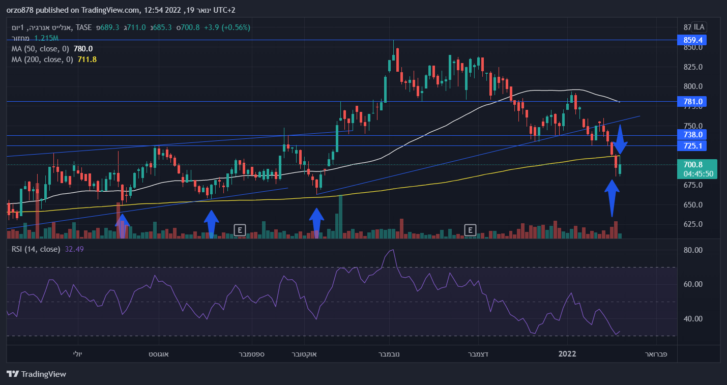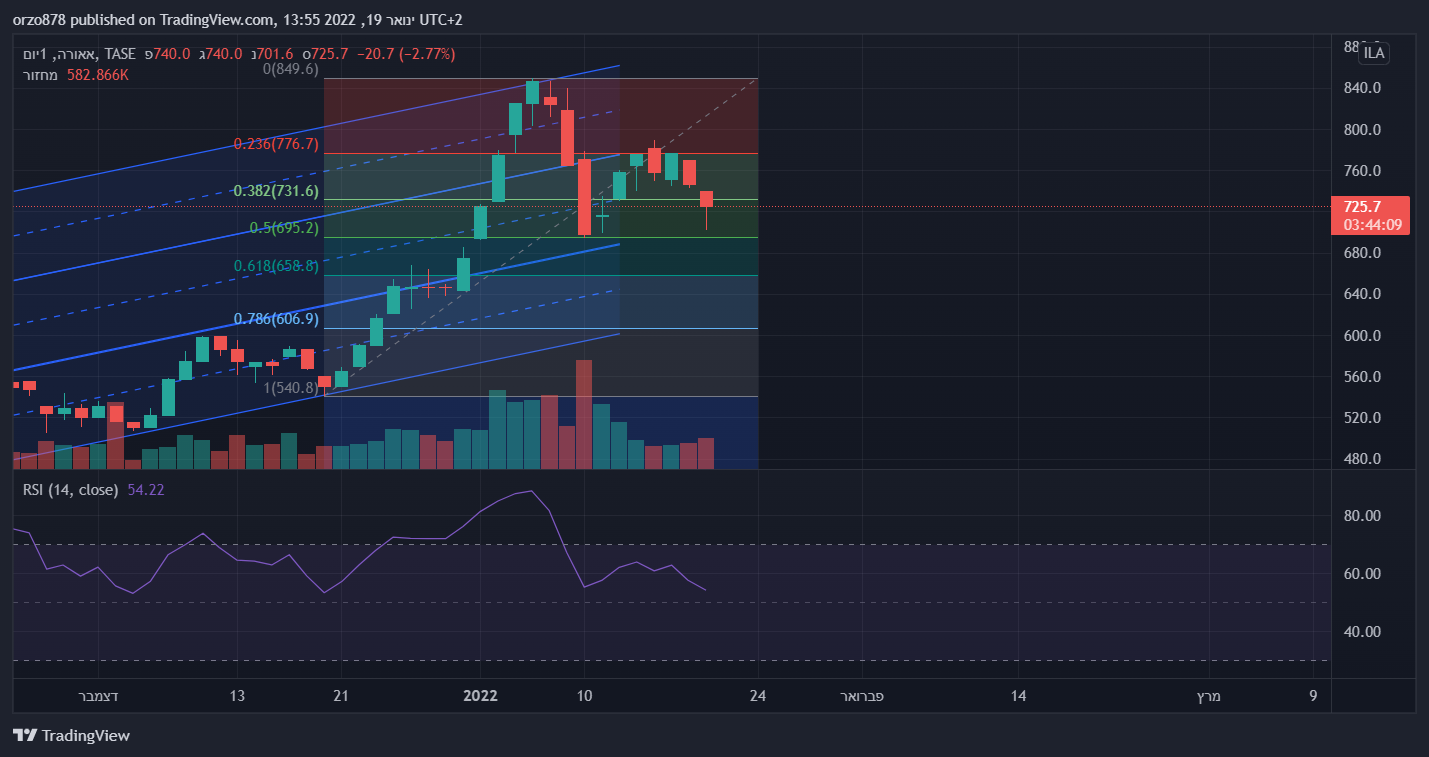 עליו נתמכה מספר פעמים בצורה יפה. מבחינתי עד שאין מעבר מעל ממוצע 200 כשלב ראשון וחזרה מעל 760 (שיא יורד אחרון) כשלב שני, המניה עדיין במבנה מחירים שלילי של שיאים ושפלים יורדים.