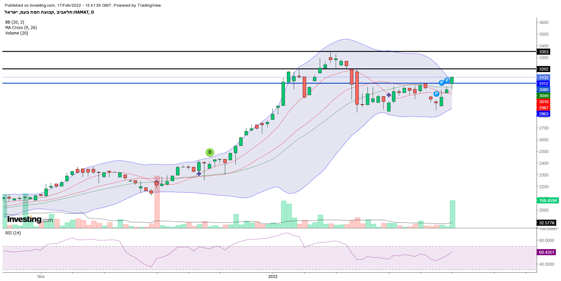 עדיין חושב שהיא יכולה להגיע בקרוב לקצה התעלה הגדולה יותר (העליתי גרף מוקדם יותר), אבל מעדיף שלא לצאת איתה לסוף שבוע - למקרה שרוחות המלחמה יתעצמו באוקראינה. בהצלחה למי שבפנים, וכבר הצבתי קניות מחודשות נמוך יותר.