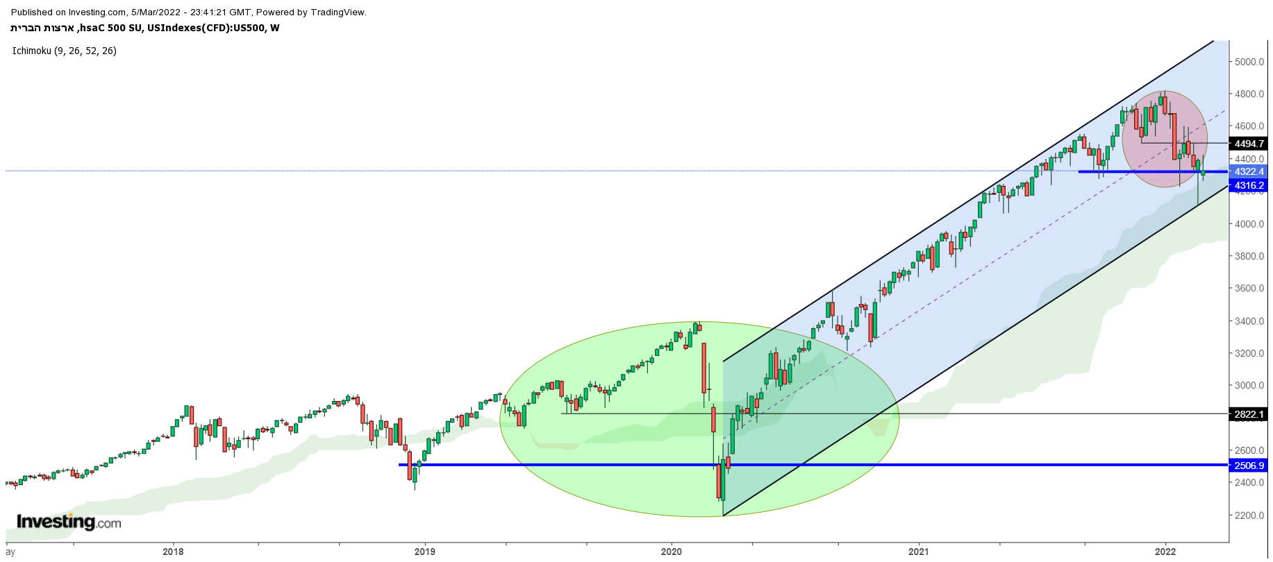 SP500 - שבועי בהקבלה למעוף למעלה.