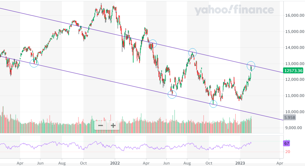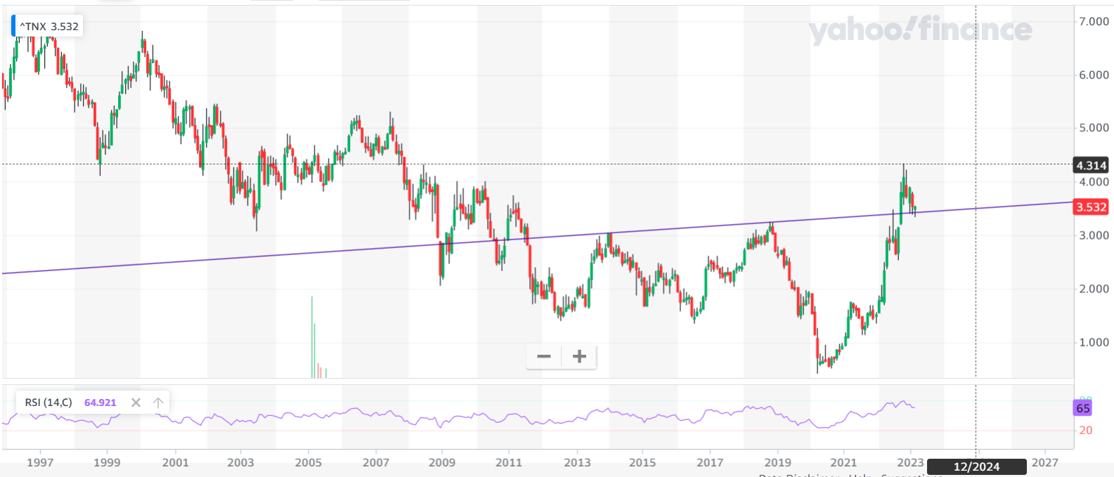 פריים, ומאז תיקן למטה. (וכרגע נמצא על תמיכה בשבועי) כמות הכסף גדלה מאוד מאז 2008 , אבל חלק מרכזי בפריחת שוק המניות היה חוסר האטרקטיביות של שוק האג"ח הסולידי שנבע מהריבית הנמוכה. שערי הנסדאק ב 2008 היו בין 2050 לפני המשבר ו 1100 בשיאו . בקיצור, היה ראלי מטורף בתמיכת הריביות הנמוכות וההרחבה המוניטרית. עכשיו נמצאים בנקודה מעניינת שיכולה לרמז האם יימשך הראלי של 2023 או שיימשך התיקון מ 2022: קו השיאים העולים מ 2014, 2018 מהווה לדעתי תמיכה נוספת לגרף. אם יהיה כאן היפוך כלפי מעלה גם זה מרמז לדעתי על סיכוי סביר להמשך דובי בשוק המניות. אשמח לתובנות שלכם. מנסה לראשונה לנתח אג"ח.