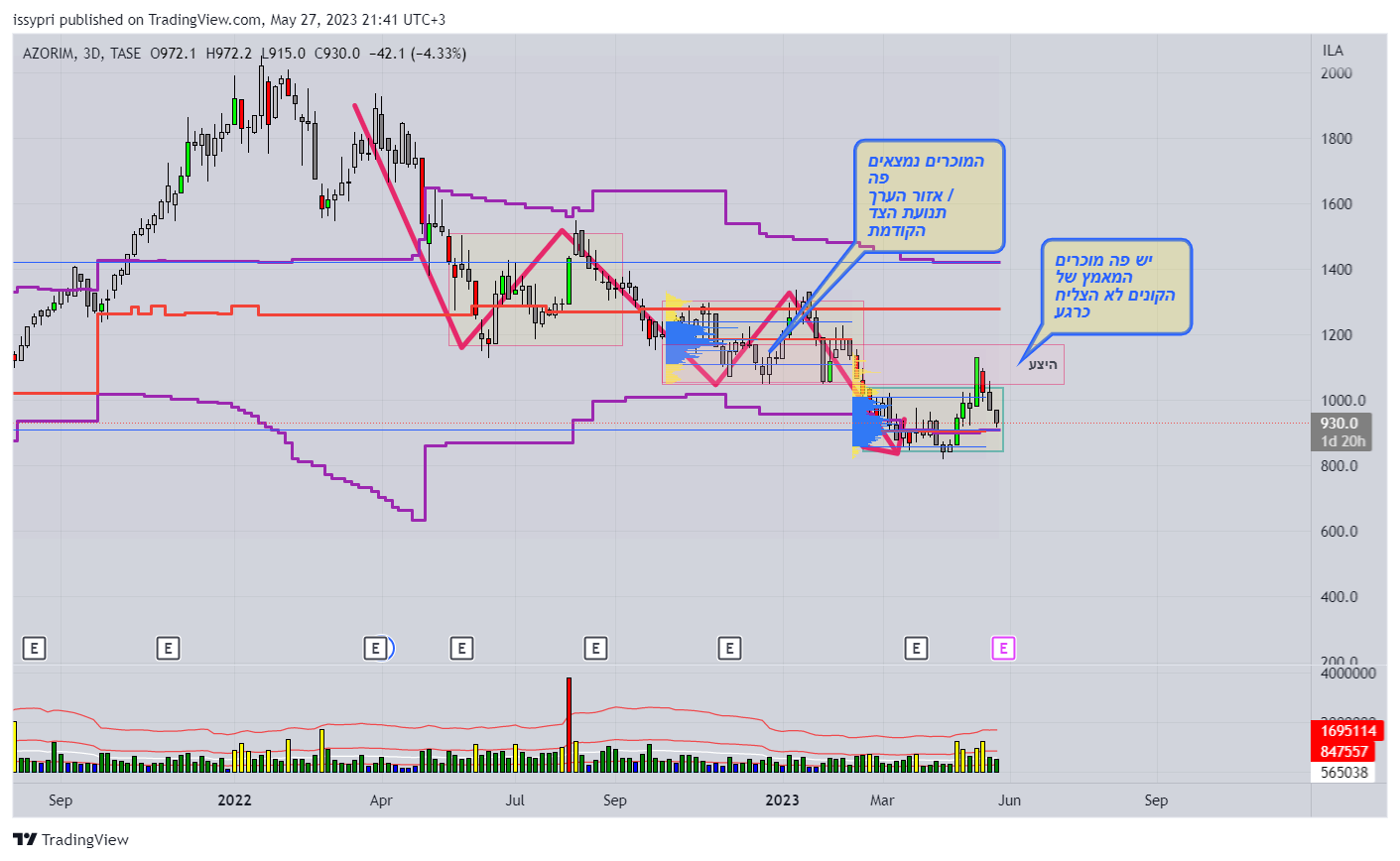 מגמה יורדת. יש עוד לאיפה לרדת. הנסיון האחרון של הקונים היה חזק ונבלם. המחיר מגיע כעת לבסיס תנועת הצד / בלימה האחרונה ואז נראה איך יגיב. הסבר בגרף.