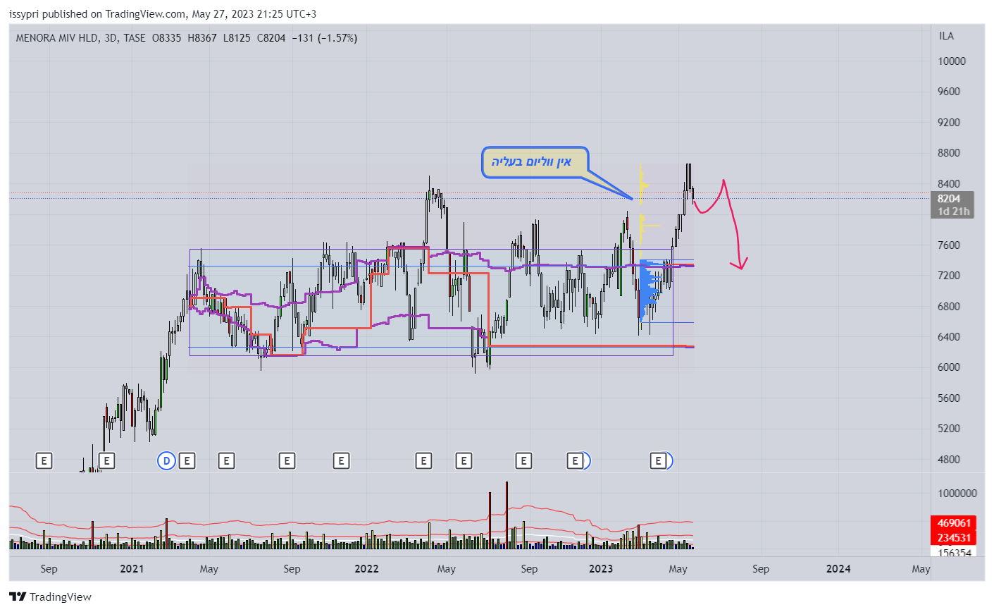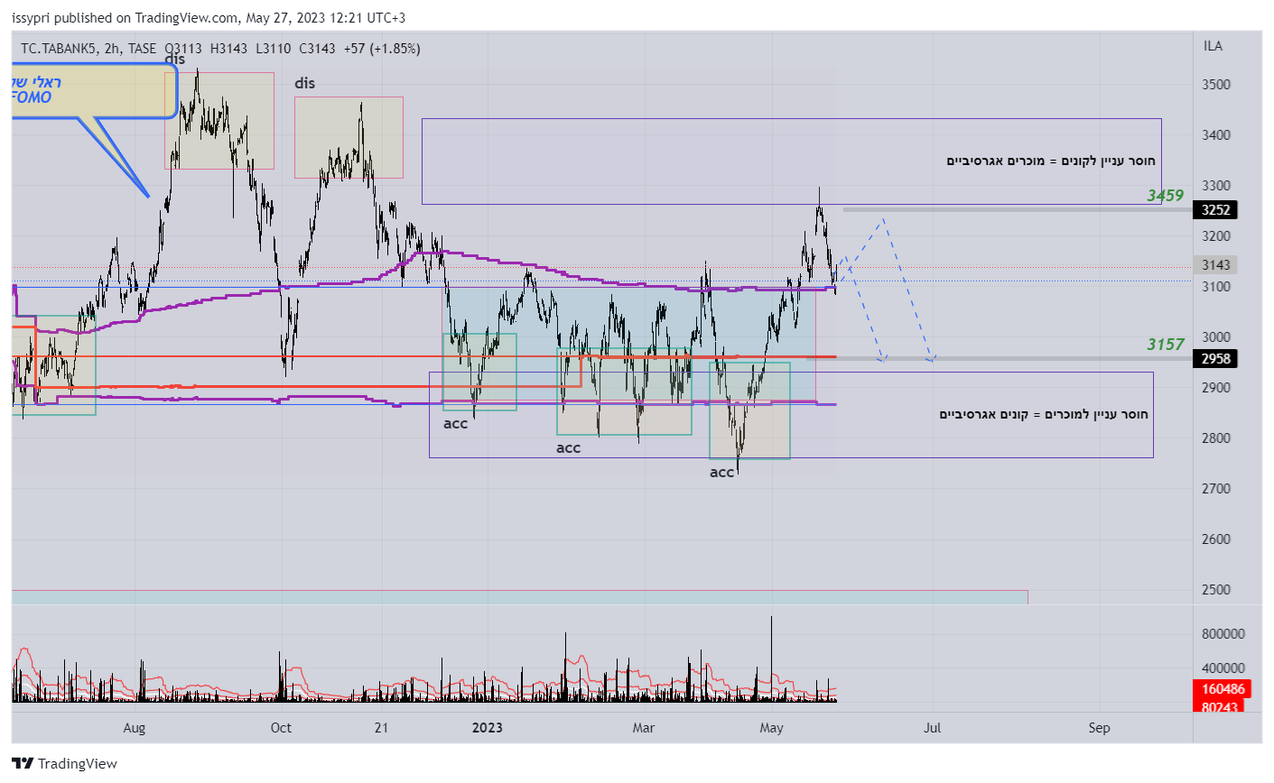 מסוכנת לדעתי התנועה הנוכחית לדעתי הפצה. המחיר נע באגרסביות בטווח בלי הרבה נזילות. זה ביחד עם איך המחיר הגיע עד לפה, מביא אותי למסקנה הזאת. כדי שאני אטעה, המחיר צריך לבסס עצמו עם עוד תנועת צד צפופה יותר אחרי פריצה. כל ראלי החוצה למעלה יחזור לטווח לדעתי. לטווח הקצר אני מניח שהמחיר ינחת חזרה למטה לפחות לאזור 3650 ובכללי יגיע לדעתי הזמן שהמחיר יחפש את עצמו נמוך יותר ולא גבוה יותר, לאזור 2780 תחילה.