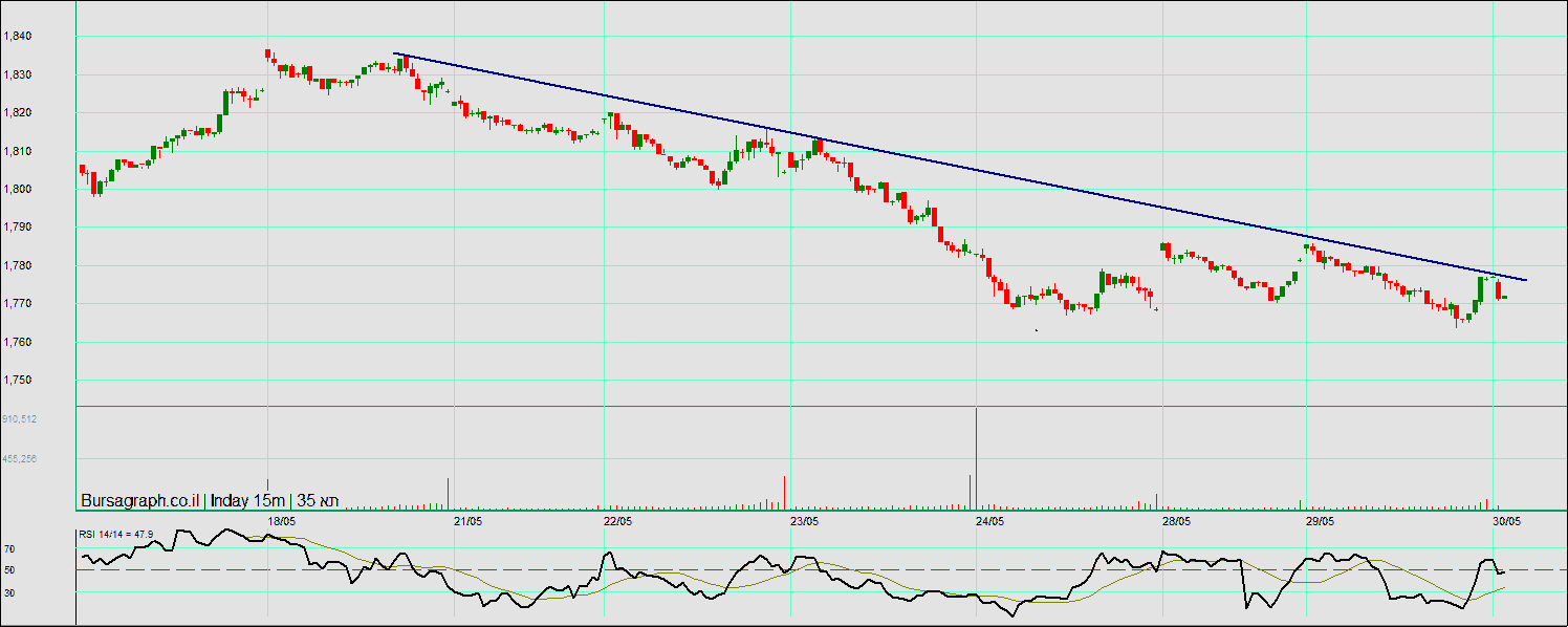 1786 התנגדות, מעל 1804 נהיה במצב טוב. אם לא ייפרצו, הערכתי, המשך דישדוש וירידות אל איזור 1750 ושם ייבחן. הכיוון שלנו הוא תנועה צדדית, דישדוש עם נטייה לירידות.