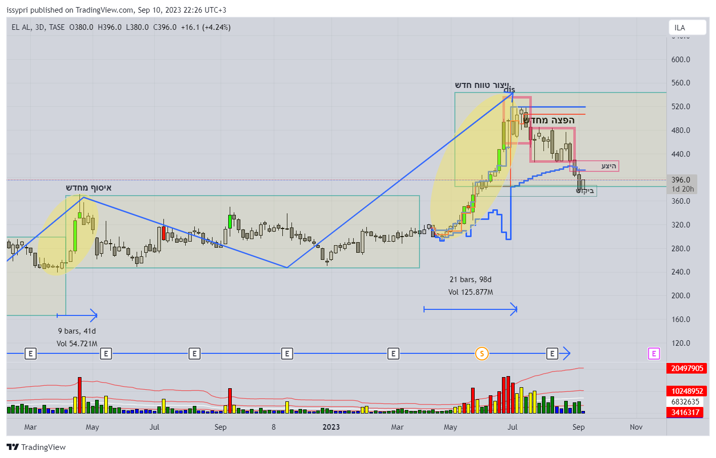 אודה למי שינתח. מלמעלה נראה שהיא יורדת כעת, אני לא רואה סיבה לזה. אין סיבה לירידה בטיסות כעת, או שאולי הדולר הגבוה משפיע לרעה. בכל אופן ניתוח טכני לא אמור לתת הסברים אלא להראות אם יש מגמה אמיתית או שהירידה כעת זמנית.