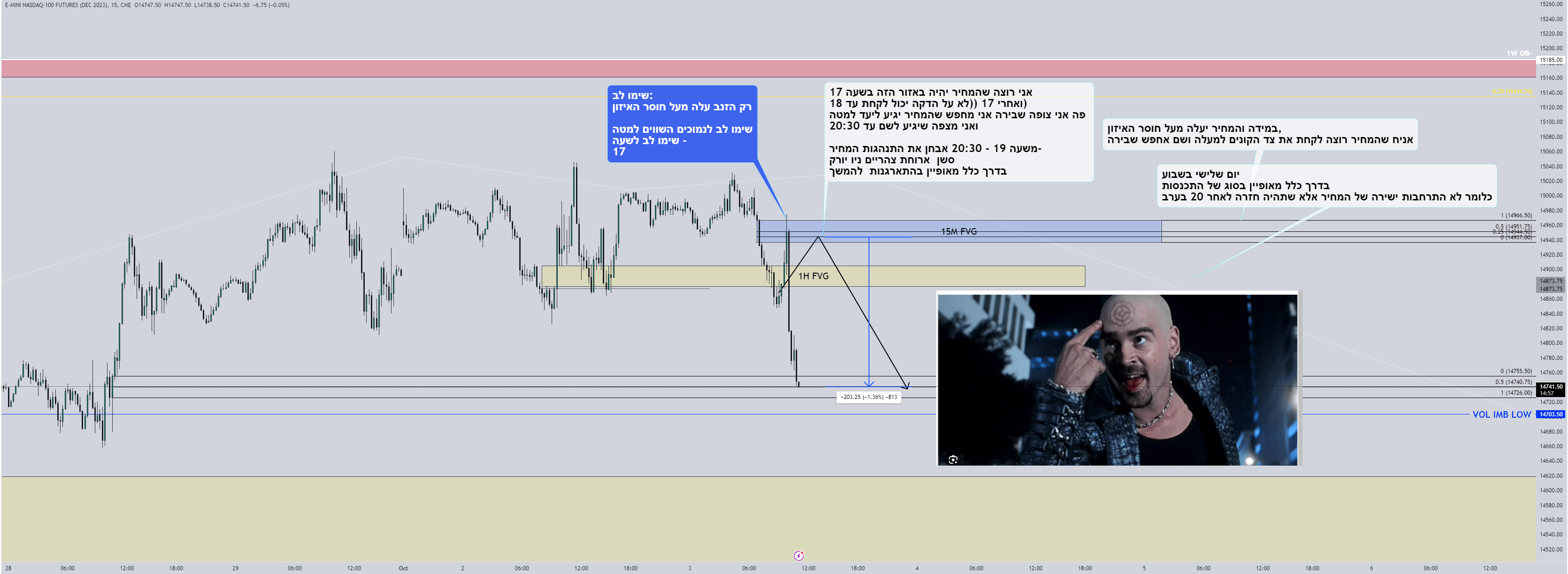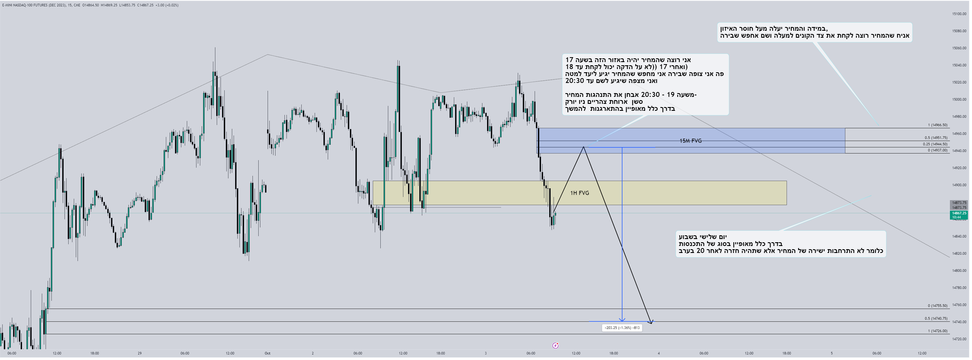 אתמול טעיתי בכך שנתתי לפאוול יותר מידי משקל מול יום שני בשבוע שמאופיין בהתכנסות. נתתי לרצונות שלי לראות את המחיר נשבר חזק להתגבר מעל האובייקטיביות באופן מסירת המחיר השבועי. אם זאת, זה עדיין לא משנה מהיעדים, ונראה שהיעד מאתמול סך הכל התעכב ביום (למי שלא סוחר אופציות פקיעה יומית זה לא משנה) והסוחרים קיבלו יום חנינה (או שראו את המחיר עולה, ואמרו זה עולה אני חייב לקנותתתתת)