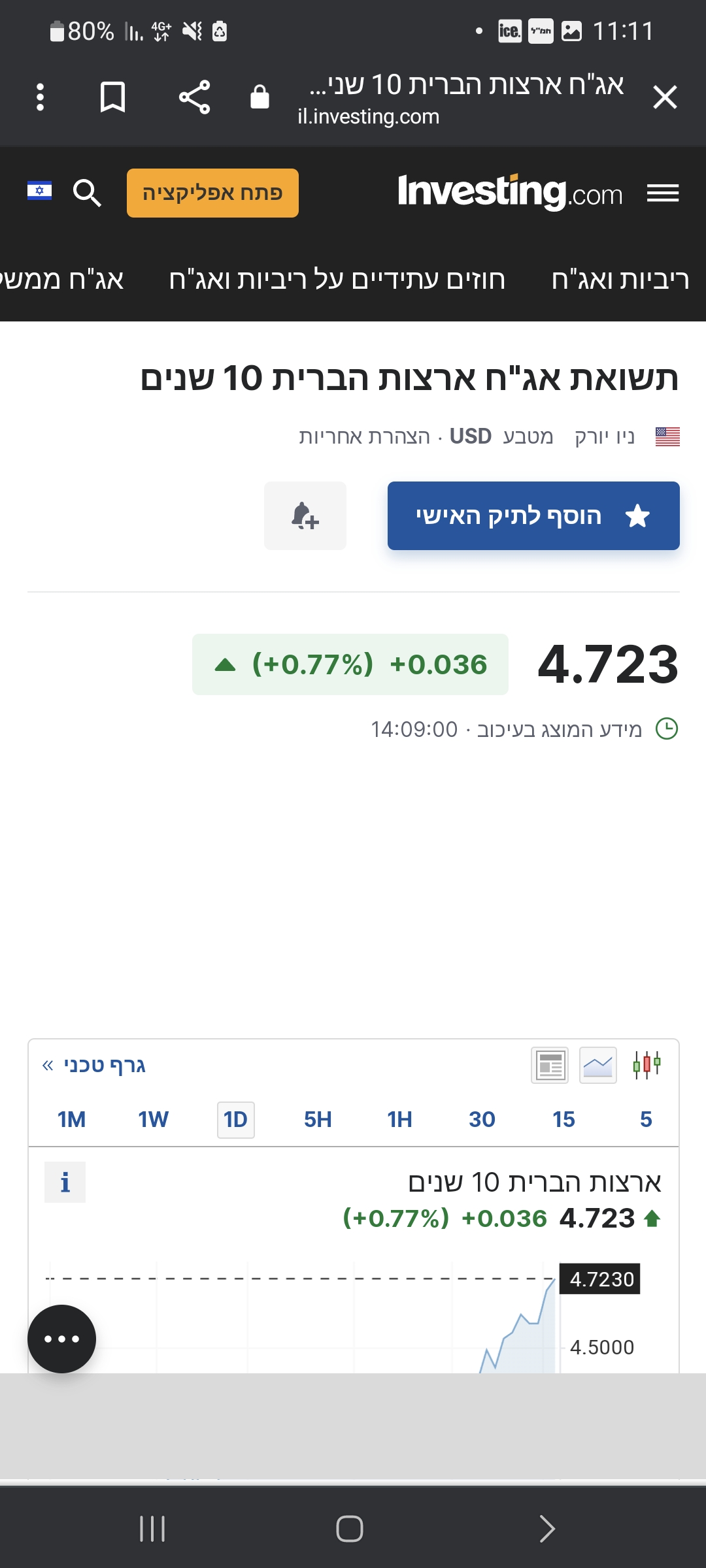 שתשואת אג"ח 10 שנים ו5 שנים בארה"ב היא זהה ובשיא 4.755