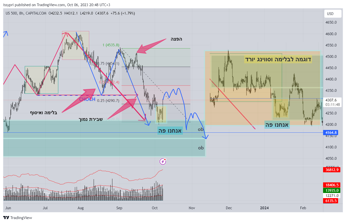 דרך הסנופי. נבלמנו היום ללא ספק. אנחנו מעל אזורים מוסדיים. (אורדר בלוקים). השוק רוצה לקנות פה אבל אין מספיק מוכרים (הוא למעשה קנה מנה ראשונה) הוא יפיץ את מה שקנה למעלה כמו בסקיצה . אז ירד וישבור את הנמוך. יהיה לנו רגע של אופוריה, ציפיות למהלך שורי, אבל לדעתי ניכנס לאותו תרגיל שהשוק עשה לא מזמן (חיצים למעלה)