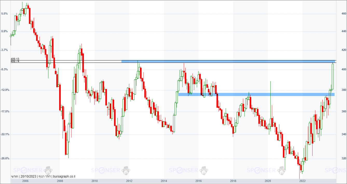 דולר שקל - גרף חודשי ארוך טווח (ללת)