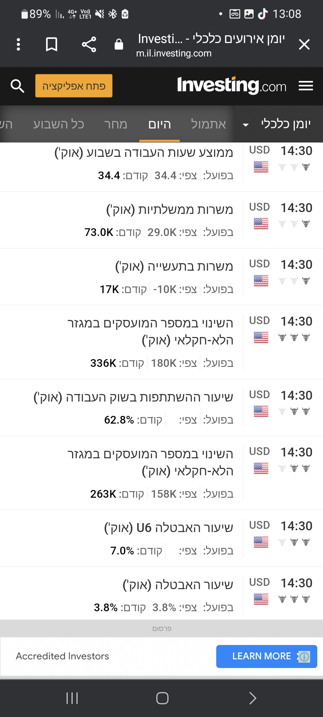 יומן אירועים כלכלי להיום (ללת)