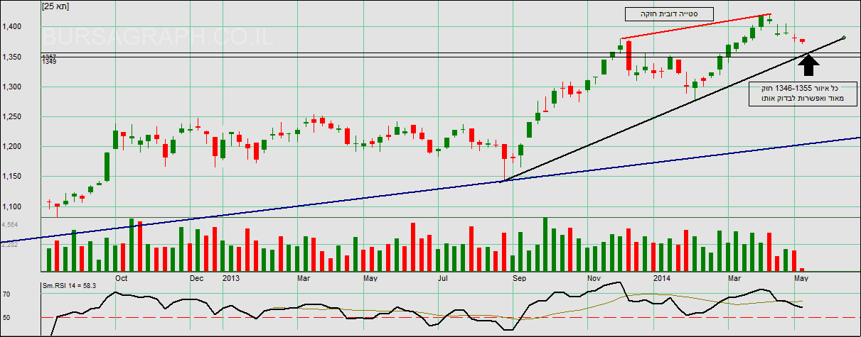 לא להכנס לפניקה נקבל רק !!!! מימוש בריא בחודש מאי מהשיאים והעליות האחרונות. נראה ירידות של עוד אחוזים בודדים לדעתי במדדים לפני התיצבות.ושוב יעדי מאי : ה- S.P 1800-1828. הנסד"ק 3997-4021. מדד 25 1295-1322. לא מפולת לא משבר המדדים [ חלק גדול מהמניות ] עלו מעבר ליעדם ללא סיבה והם יתקנו לערכם האמיתי. ברור שיהיו מניות גם שיעלו אבל לדלות אותם בתקופת מימוש זה לא קל. הדולר גם כפצוי ירד מה- 3.45 וגם בנק ישראל לא יכול לעשות דבר בנושא. המקסימום שמירה על ערך זה כפי ששמרו לא מיזמן על ה- 3.5. ברור דעתי והבנתי האישית בילבד. ושוב אני רק עם אבנר לטווח ארוך.