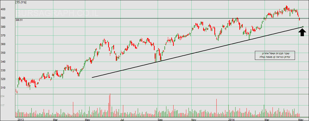 מעל 400 ושפל מתחת ל 390 הכיוון הוא למטה. אני בכלל חשוב שהכיוון למטה וזה פנדומנטלי בעיקר על חברות הקניינים למיניהם כמו מליסרון ועזריאלי....