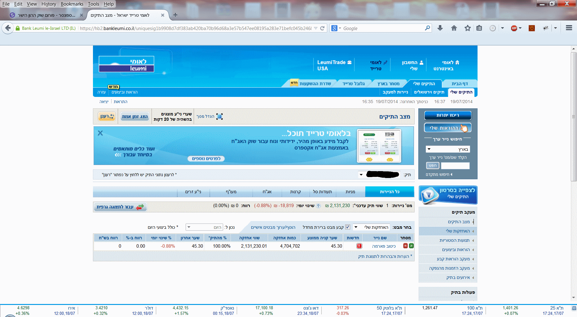 לא רשום כמה אני מופסד כי קניתי את זה בשער האחרון, זה הירידה היומית לא הכללית. דהיינו אם קניתי בשער האחרון (ואכן כך רשום) אז אינני מופסד שקל. (שים לב שער ממוצע ושער אחרון אותו שער) שנית... העליתי את זה מהיום ב4 וחצי, תגלול ימינה תראה שה25 על 1401 וה100 על 1261. שים לב שהערך לשמאל השם ולא לימינו. ואני גם משוכנע שספונסר מאמין לך... כי גם למה שאני עשיתי הוא היה מאמין. אני סקפטי, אבל עדיין יש לי שיער, זה גם משהו.