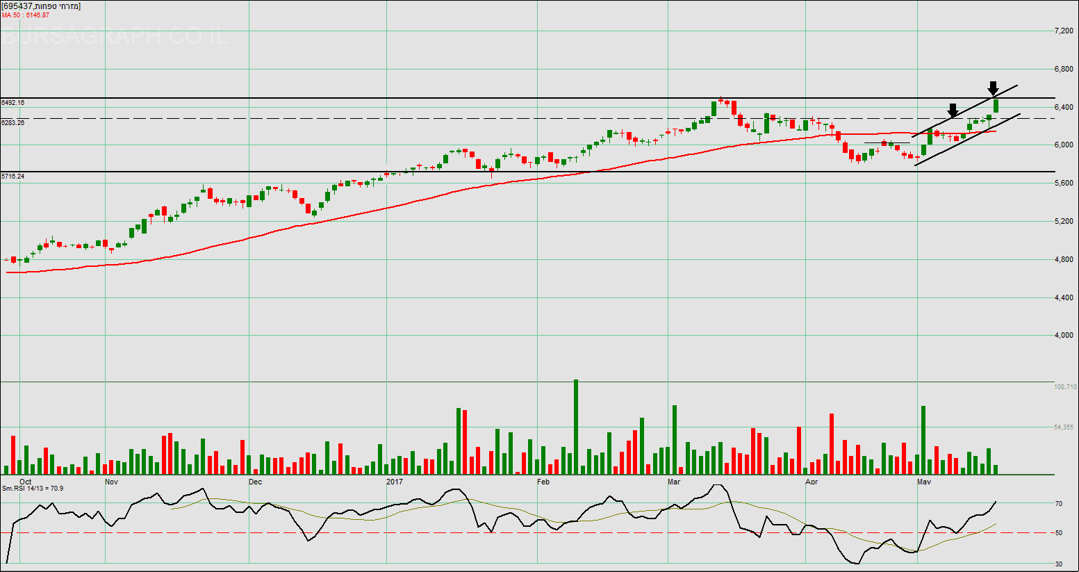 של יום חמישי 6350 היא חיובית ויכולה להמשיך למעלה סה"כ היא מתייצבת מעל השיא האחרון שהיה ב6450 שבירה של 6350 יכול לשלוח אותה 6200בשלב ראשון