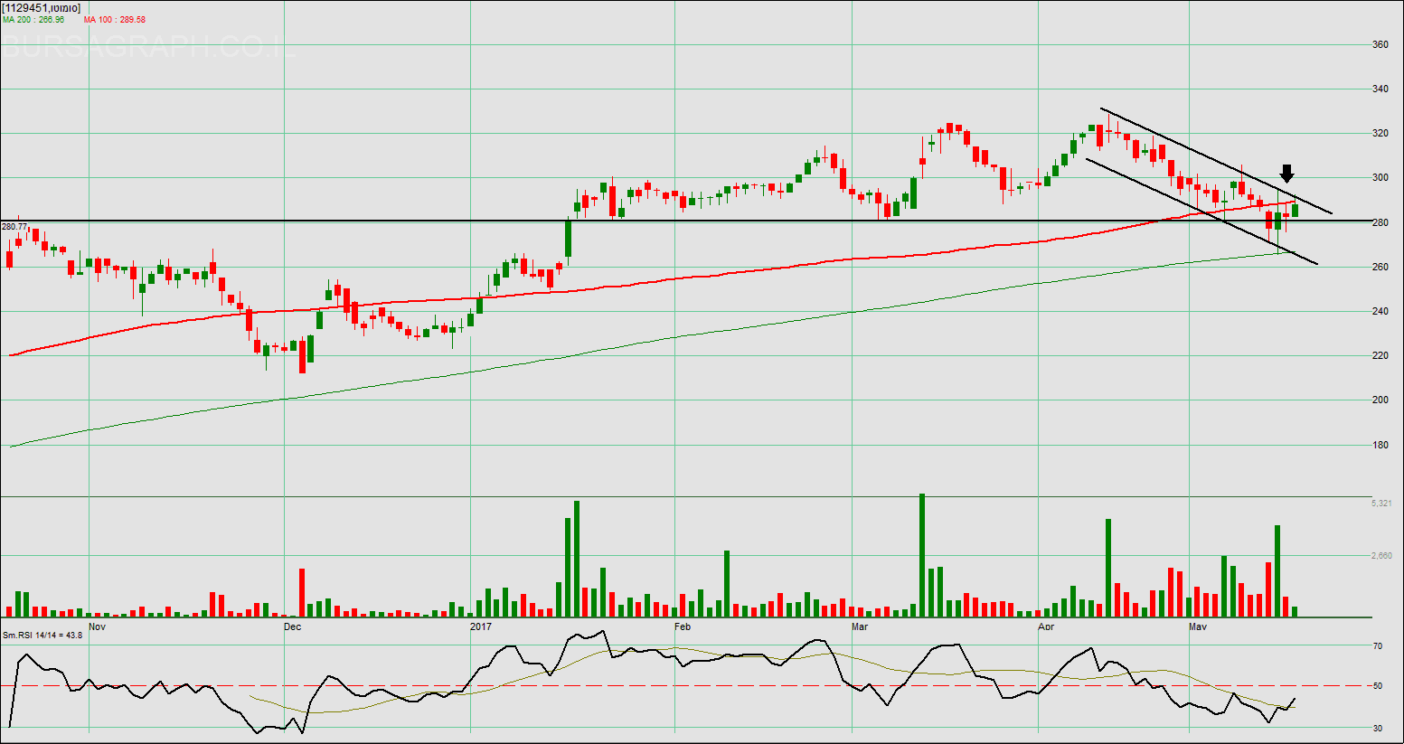 גם כאן כל עוד תשמור לא ליפול מתחת לנמוך של יום ה' 42300 הכיוון 43500 כאשר פריצה של רמה זאת יחזיר אותו לנסות לתקוף את השיא ב 44100