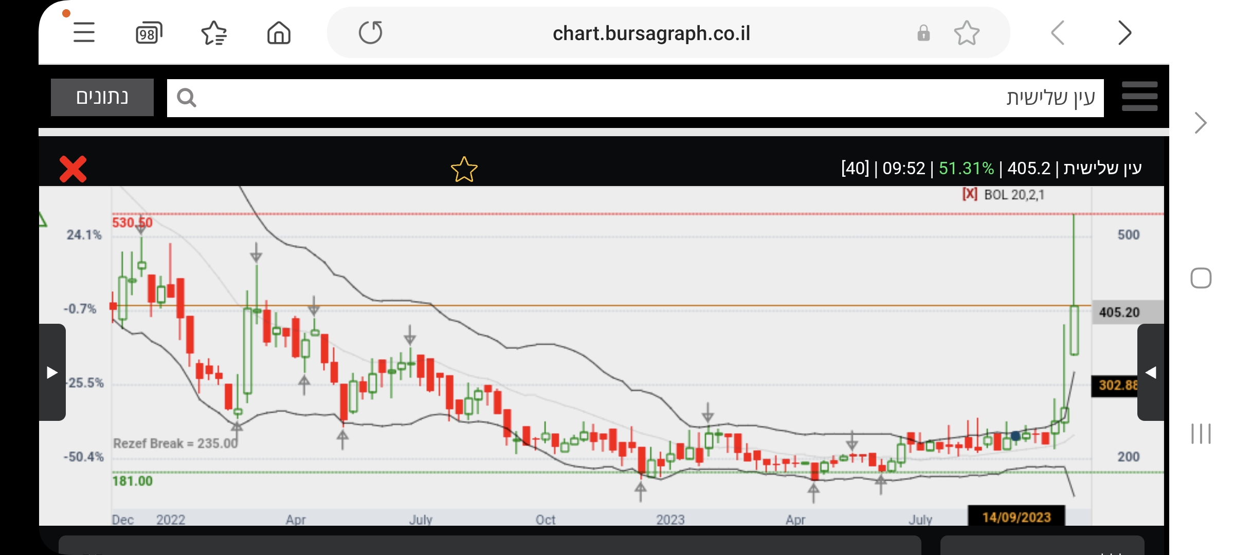 אני לא סוחר את עין על פי הטכני, אני מזהה שם פוטנציאל מעבר לזה. אם כי כרגע הסיכון עצום! יש מצב שזו היתה הזמנה חד פעמית ותחזור לסורה (אני מקווה שלא). בכל אופן אצלי זה רק חלק קטן מהתיק. החלק הארי מחכה בחוץ להזדמנויות בעתיד אם המצב הכלכלי בארץ יחמיר /ואו הפאניקה תגבר אם תהיה לחימה מכמה זירות. לא ממהר להיכנס... יש לי את הגיים פלאן שלי ואת רשימת המניות המועדפות (בעיקר בנקים, נדל"ן מסחרי, גזיות).
