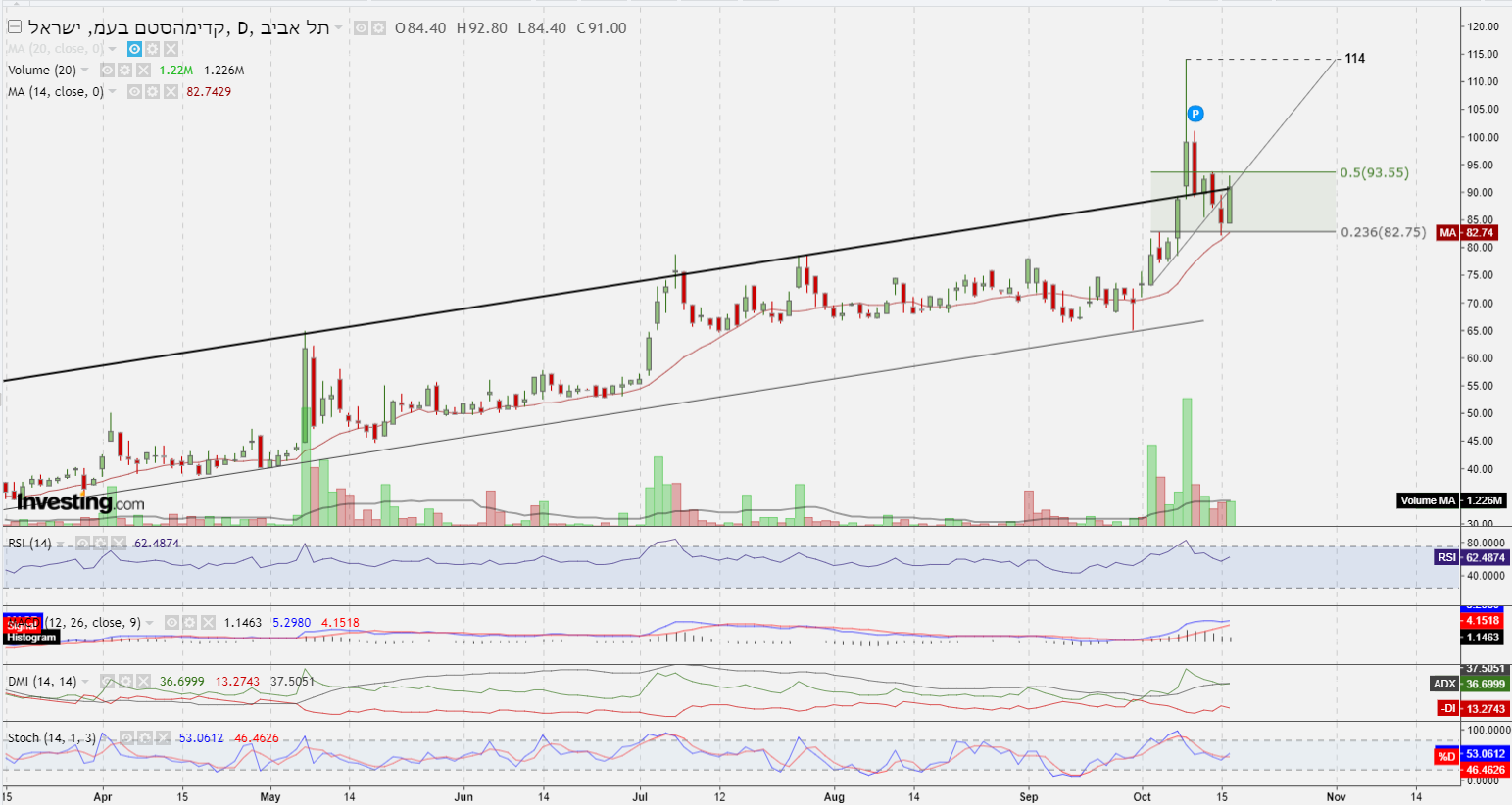 התבססות מעל שער 93 תוך כדי גדילה במחזור היומי יאפשר למניה להמשיך את המהלך העולה אני מסמן את שער 110 כיעד למניה לימים הקרובים .ג.נ. מחזיק
