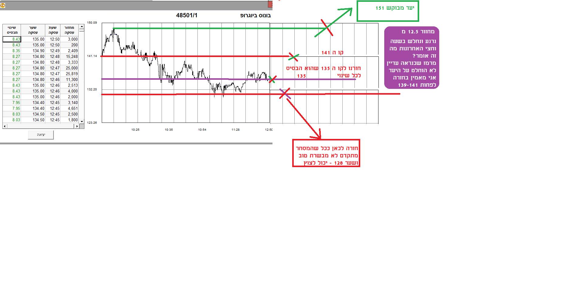 מכירות כבר נכנסו לביצועים נשארתי עם 10 % להמשך והסיבה המחזור האיטי ביותר משעה 11:30 שהיינו סביב 10.מ קצב הגידול מאד איטי אז העדפתי לשחרר חלק 4 לפני שיהיה מאוחר אין המלצות רק תחושות בטן