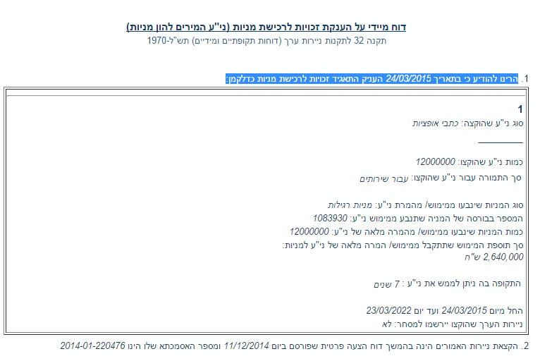 והיום, מישהו שם קונה ומוכר לעצמו או שמעביר למישהו אחר, רוב העיסקאות באותו שער עם אותם כמויות, אבל זה שהוא מימש כזה כמות בשער גבוה מראה על הבעת אימון גדולה.