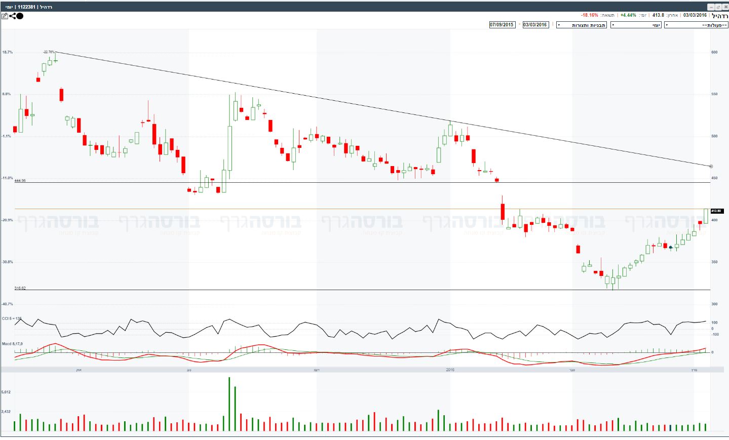 מהשפל האחרון, התבססות מעל 415 תעלה בצורה משמעותית את הפוטנציאל להגיע ל 470-475 זו האחרונה נחשבת כרמת התנגדות קשה מאד ,אבל אם וכאשר היעד הבא 515 נקווה לסגירה היום ברמות של עכשיו 425-430 !