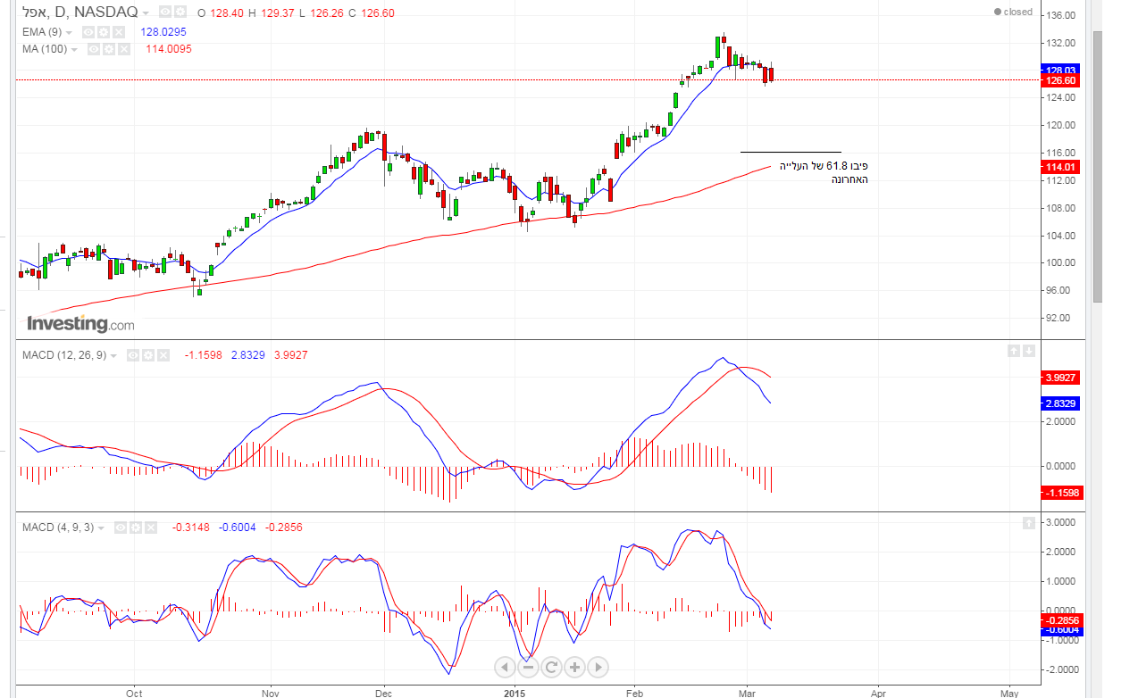 שנית למה לגזור יעד יורד לתיקון הכי העמוק האפשרי.... קצת צניעות ביעדים ובטח שיש 120 דור שהוא הגבוה האחרון שנפרץ...הכוונה היא גם אליך בחוזקה של אפל וגם לאלי שתמיד קיצוני בהערכות שלו. כתבתי כאן קניה על אפל ב 120.5 הוא כותב לי חכה לפריצה ברורה, מי שישן על האף בשוק האמריקאי יפספס פוזיציות חופשי על הבר....