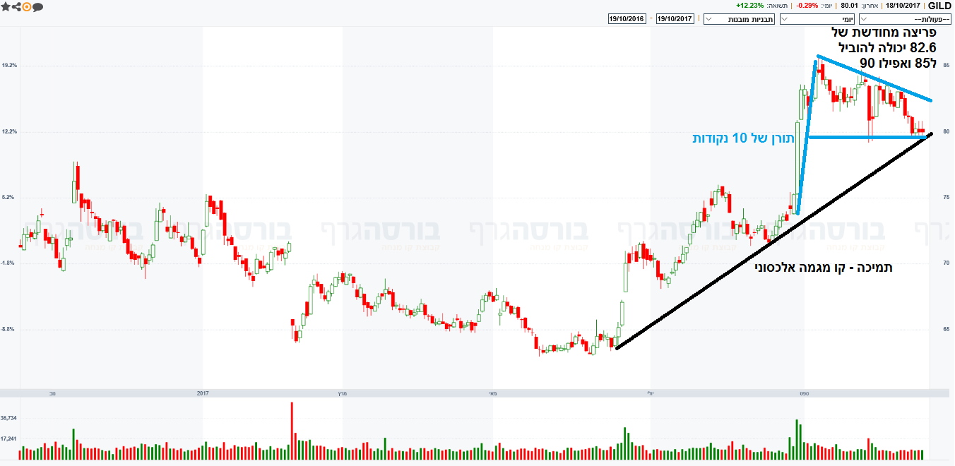 GILD - אישור חשוב מאוד לקייט בוקר טוב, לפני חודש נכתב כאן על רכישת קייט וההשלכות לגיליאד פארמה. אתמול במסחר המאוחר (AH) גיליאד שחררה הודעה שהFDA אישר תחילת טיפולים בתרופה של קייט בשיטת הCAT - T בסרטן הלימפומה. הטיפול נקרא יאסקרטה והוא יעלה לא פחות מ350 אלף דולר. הדבר החשוב הוא חברים שהטכנולוגיה של קייט עובדת, נקודה. עכשיו גיליאד מצטרפת לנוברטיס (גם להם אושרה פרוצדורה מעט שונה והיא עולה 450 אלף דולר) קודם כל חדשות טובות לעולם ודבר שני חדשות טובות למחזיקי המניה. *** טכני - נגיע בשבוע האחרונה בקו מגמה עולה (אלכסון שחור) לדעתי מעל 82.5 לערך המניה תלך לכיוון ה85 בתקווה שהמומנטום יהיה טוב והמניה תגיע גם ל90 (מימוש כל הדגל, למרות שזה נראה קצת מופרח כרגע) בהצלחה לכולם ויום טוב👍🌹