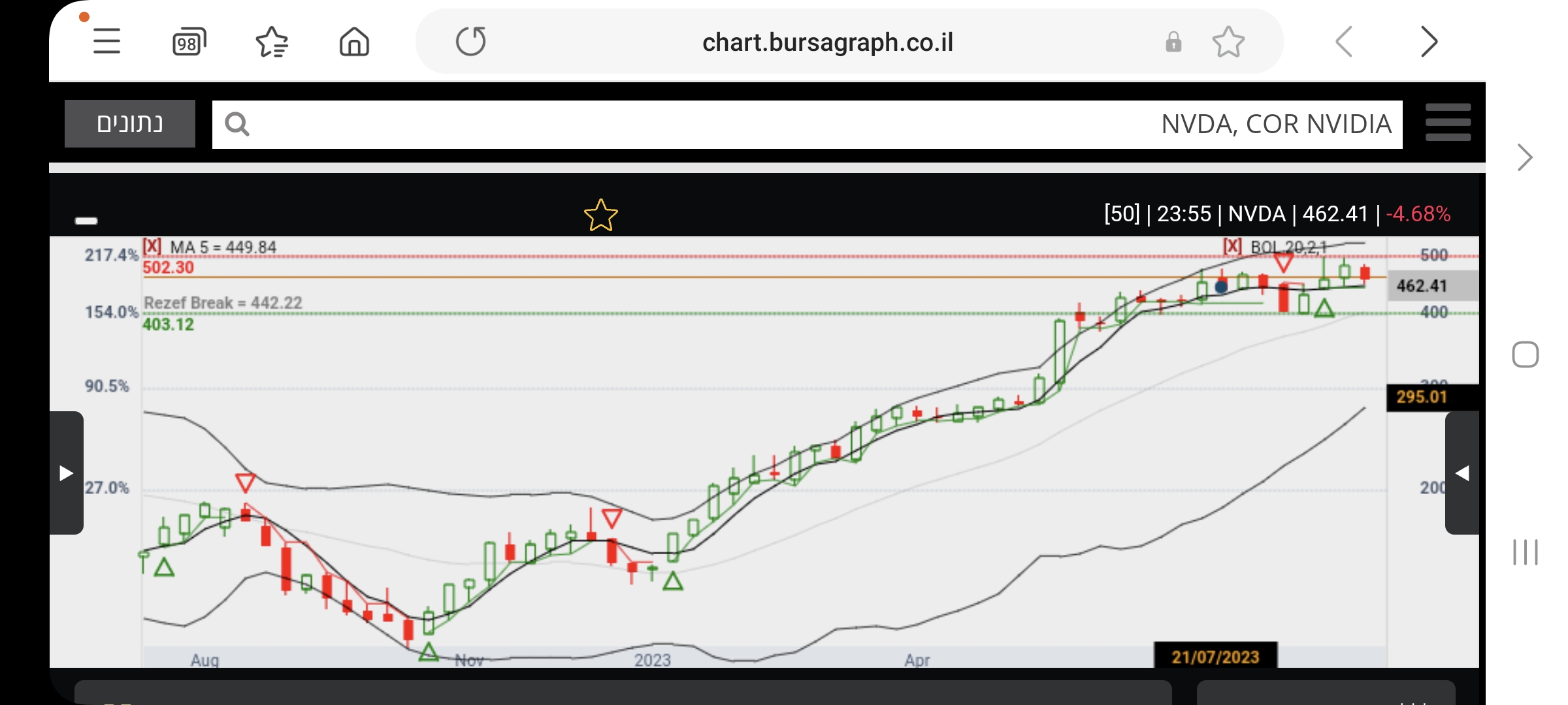 שנראה המשך של הירידות NVDA מתחת 20 יום ולא מצליחה לעבור אותו (459) נסדק יושב על ה20 יום The line in the sand S&P גם שם