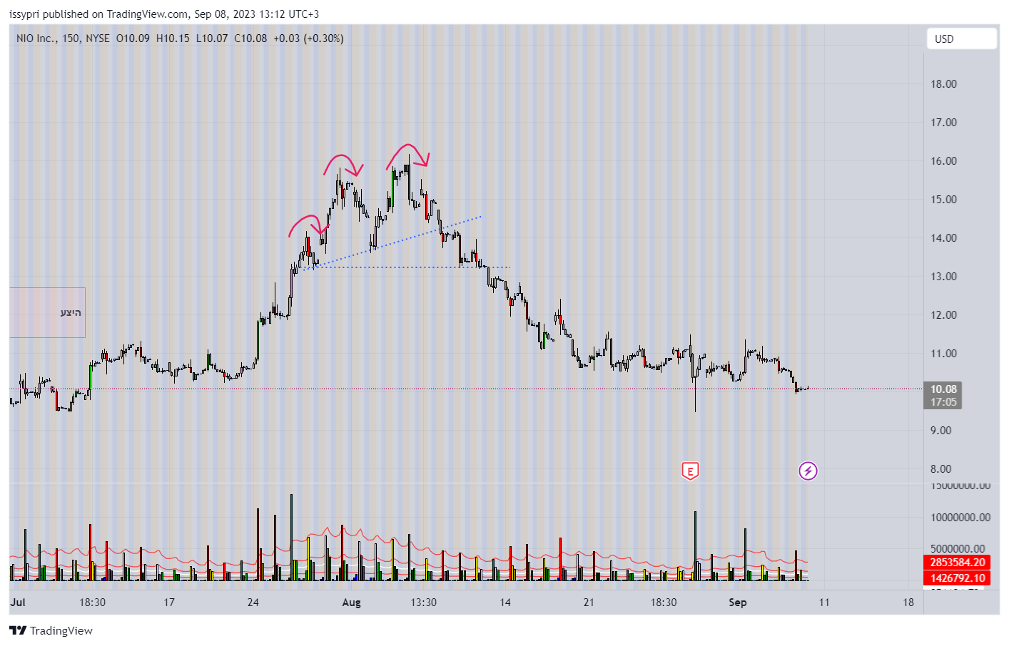 נניח גרף 4 שעות נר 1 - נר שורי חזק - הרבה קונים במרקט נר 2 - ווליום חזק יותר מנר 1 אבל נר קטן בהרבה - מאמץ גדול יותר ותוצאה הרבה יותר קטנה = מוכרים בלימיט מעכלים את הקונים. נר 3 - נרות קטנים ווליום נמוך. חוסר עניין של קונים. אז מה סביר שיקרה ? שהמחיר ירד חזרה לאזור 2.6 ברמה הגבוה יותר - מעל הראש של המחיר היצע. שם אני מניח יש יותר מוכרים. צריך לנסות להבין מה הסיפור מאחורי הנרות ופחות ללכת לתבניות ספר. מאוד חשוב להסתכל על הסיפור בתוך סיפור / רמה גבוהה יותר.