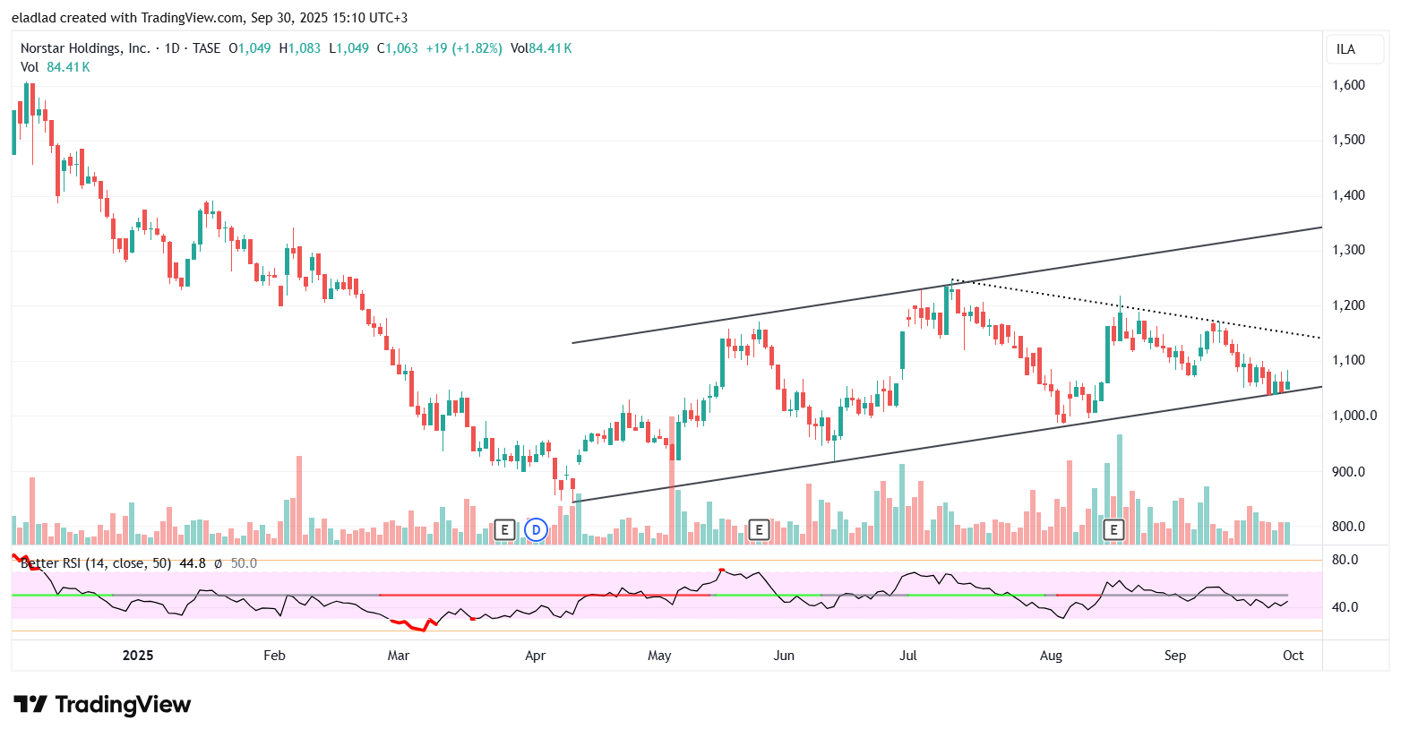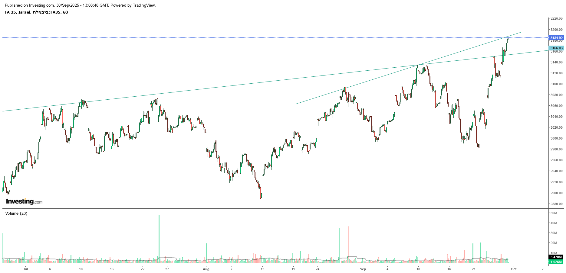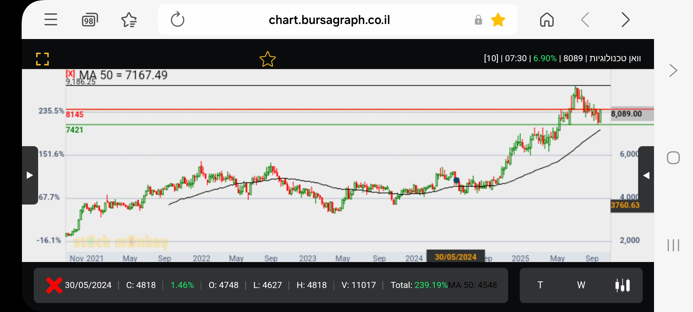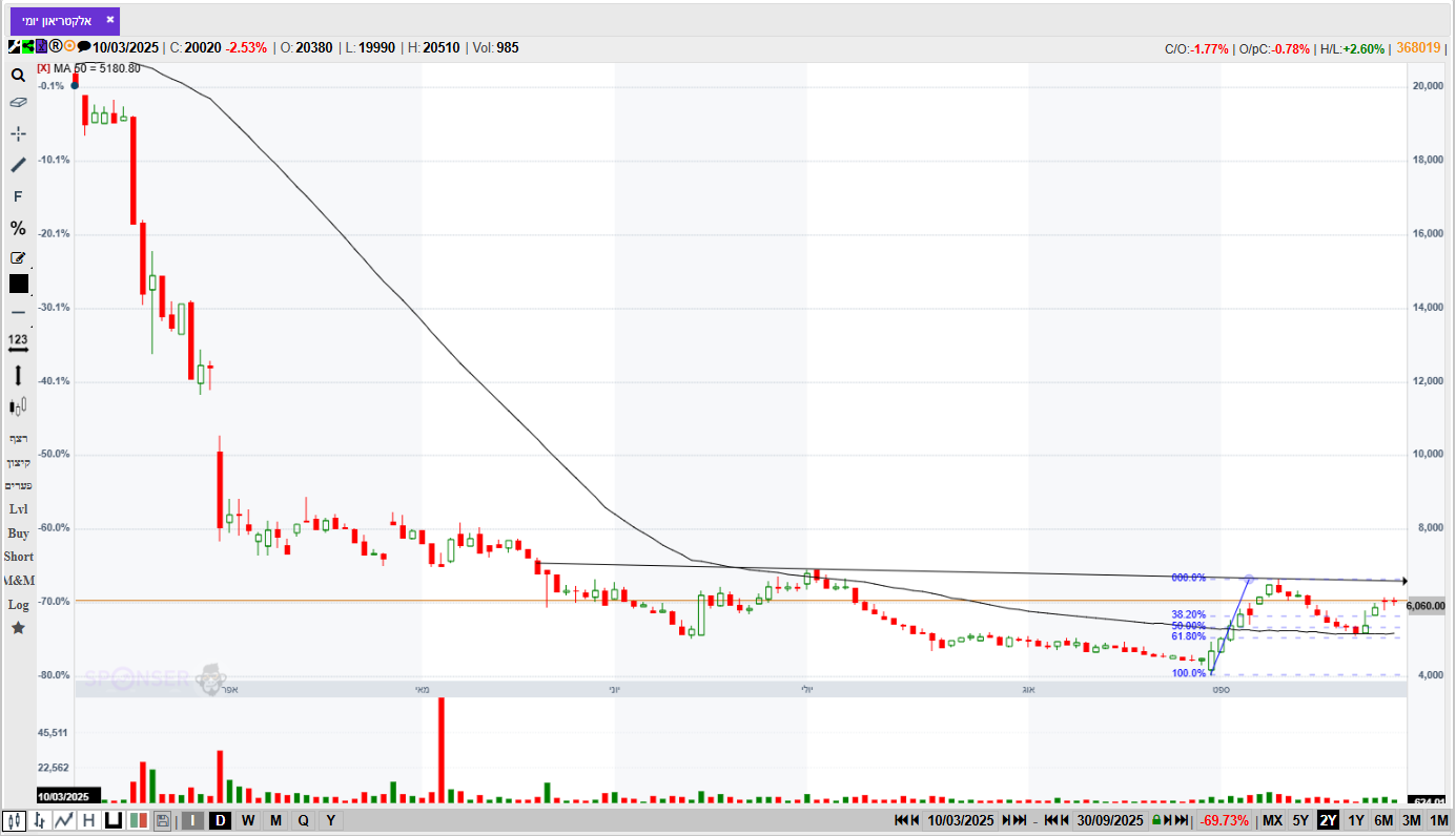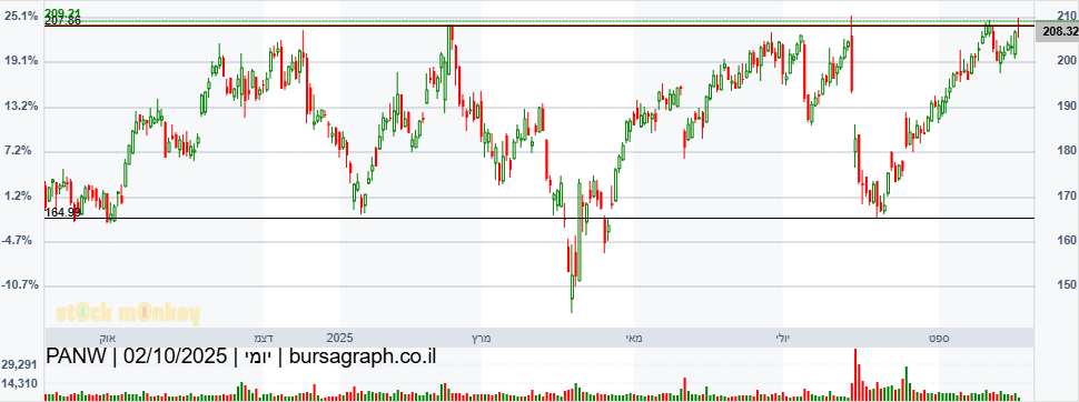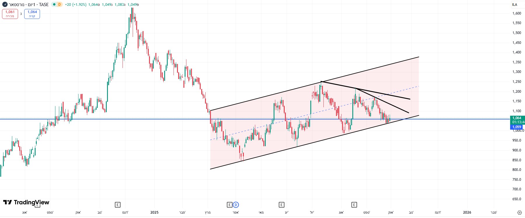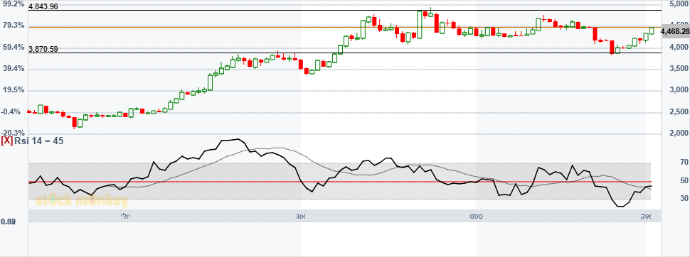 מספר ימים של עליות חדות גם בת"א,וגם בנסדק,וניגובים של שיאים שנתיים חדשים,התממשה המניה ביום המסחר האחרון ב4.5%,ובמחזור גבוה מאד של מעל ל 110% מהממוצע התלת חודשי,וסגרה למרות המימוש החד בארביטראג' של 2.2% חיובי,ובשער של-24000,כשהיעד לע"ד הוא קצה התעלה המינורית הירוקה שעומד על25850,ומהווה בהתאמה גם את יעד הדגל,הערכתי אחרי חוסר של שלושה ימי מסחר בת"א!😱