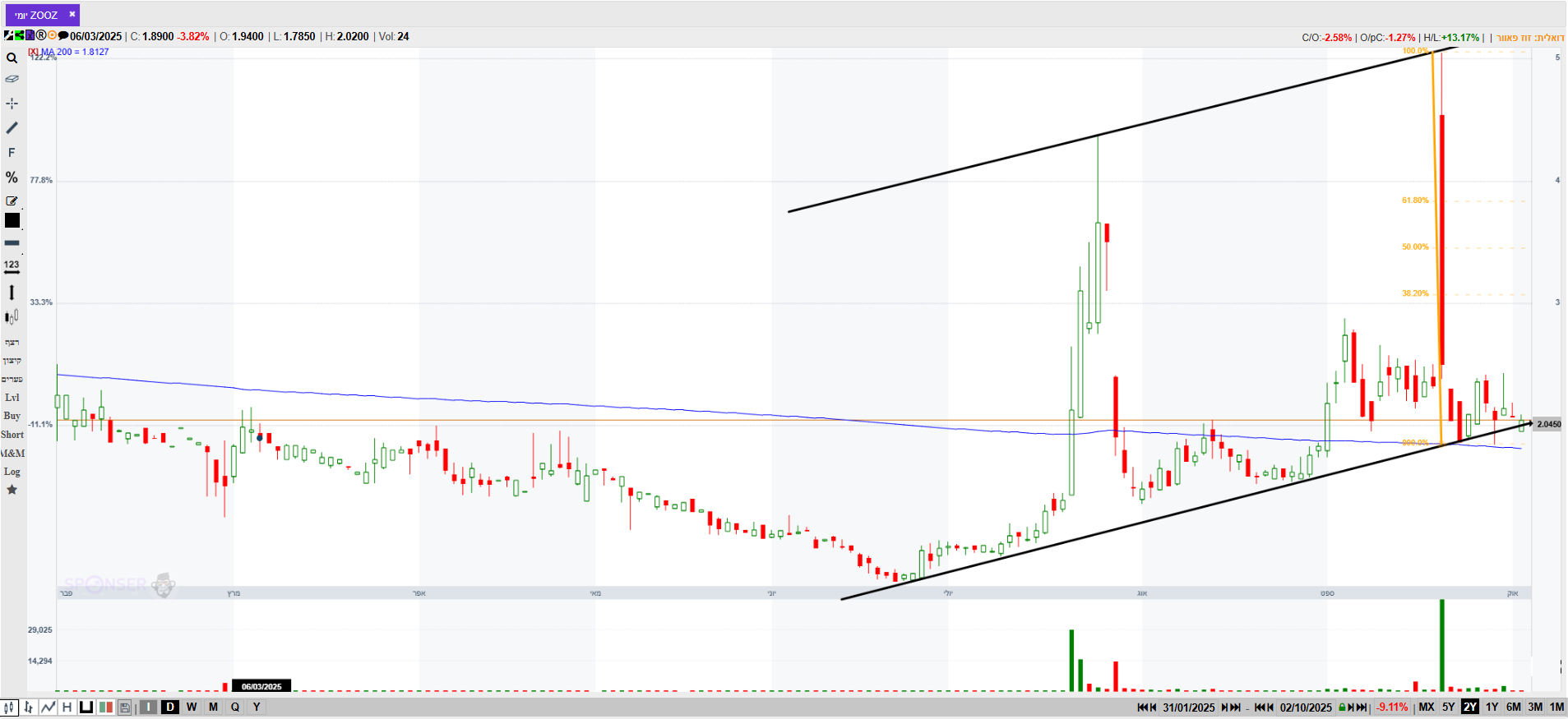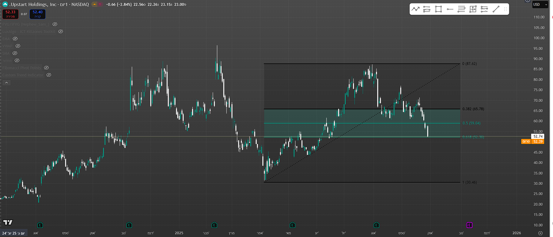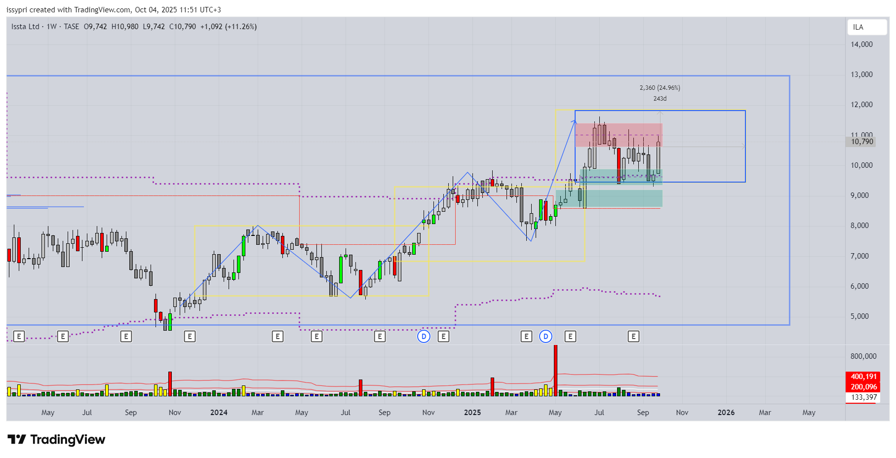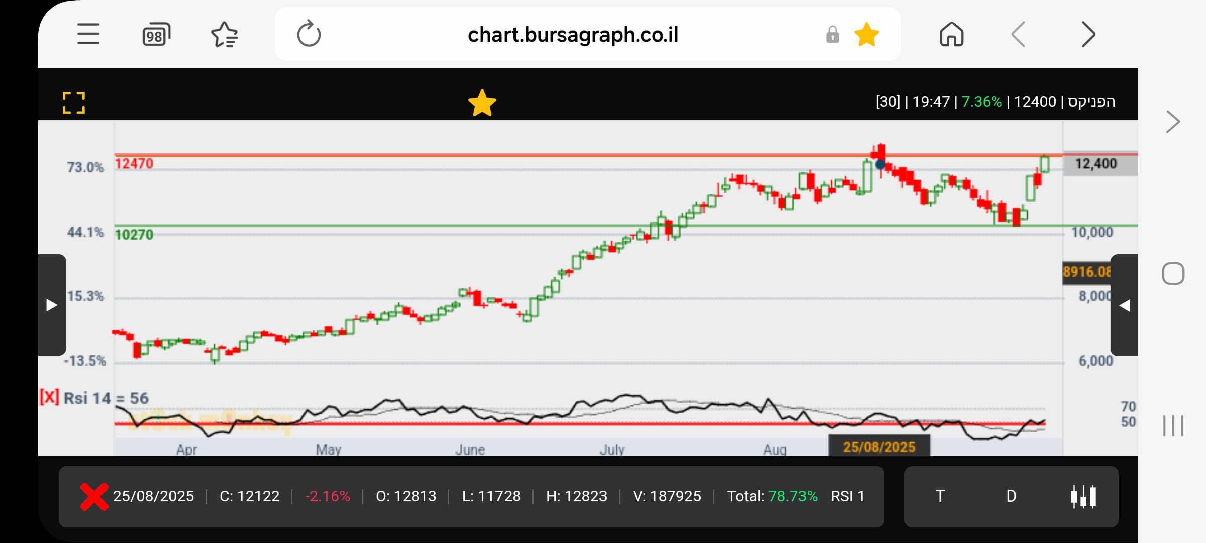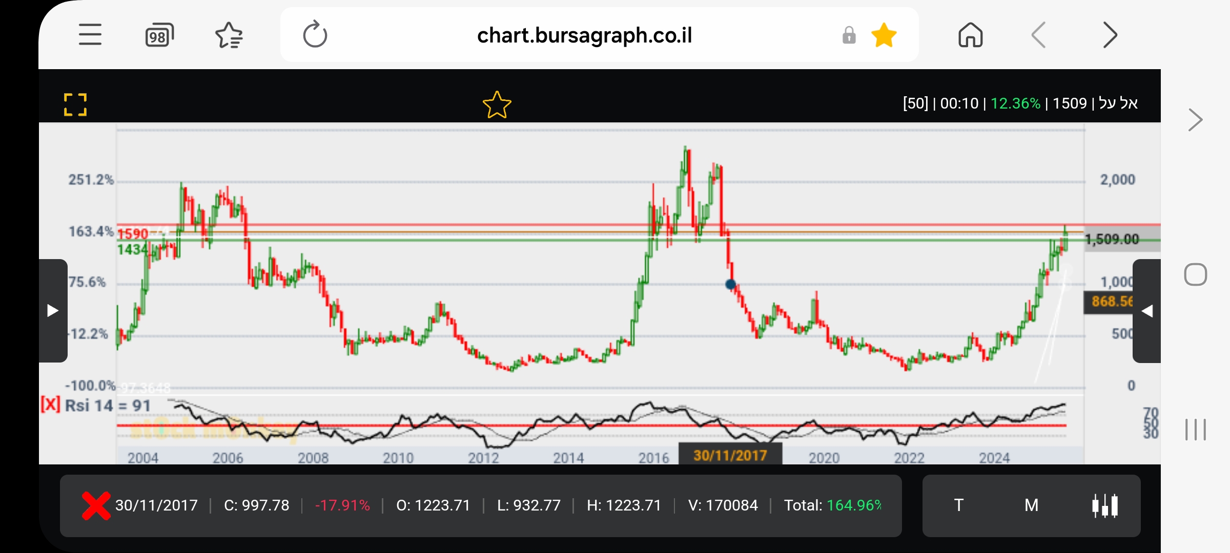 מספר ימים של עליות חדות גם בת"א,וגם בנסדק,וניגובים של שיאים שנתיים חדשים,התממשה המניה ביום המסחר האחרון ב4.5%,ובמחזור גבוה מאד של מעל ל 110% מהממוצע התלת חודשי,וסגרה למרות המימוש החד בארביטראג' של 2.2% חיובי,ובשער של-24000,כשהיעד לע"ד הוא קצה התעלה המינורית הירוקה שעומד על25850,ומהווה בהתאמה גם את יעד הדגל,הערכתי אחרי חוסר של שלושה ימי מסחר בת"א!😱