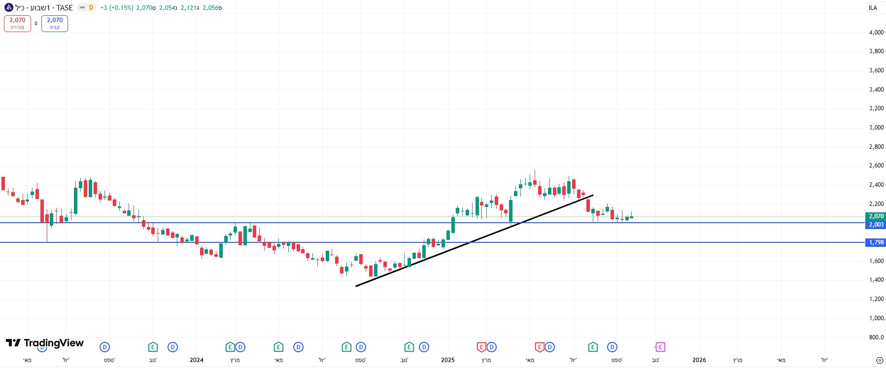 אז קניתי אותה שוב ב2085.התכוונתי שתפרוץ תעלה אופקית שבין 2,004 ל2,164 ואז תחזור לאזור השיאים ב2,400. בינתיים המניה התקפלה קצת בתוך תעלה אופקית ומסרבת להענות לתכתיבים שלי.נראה מה הלאה.